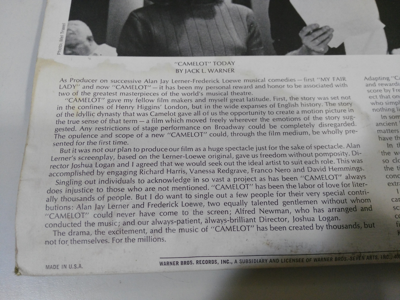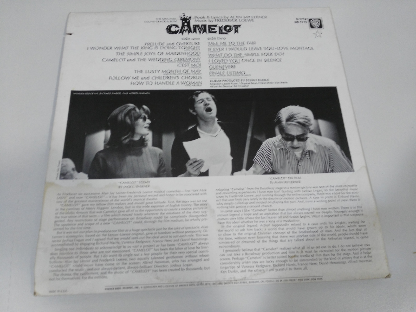 Camelot Soundtrack OST LP VINILO 12 "Warner VG/VG USA Original Edition