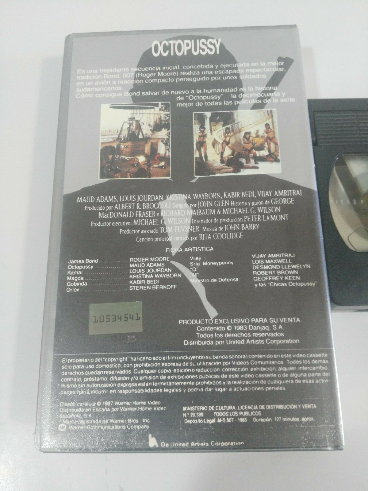 007 James Bond Octopussy Roger Moore VHS Tape Spanish de AUTHENTIC COLLECTION AUDIO: SPANISH WE HAVE MANY OTHER JAMES BOND de MOVIES FOR SALE!!!