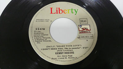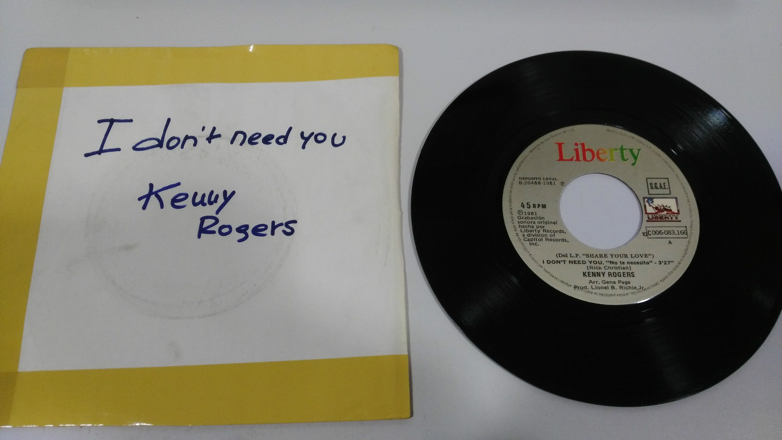 Kenny Rogers I Dont Need You 1981 Liberty Single 7 "Vinyl Spanish Edit Rare