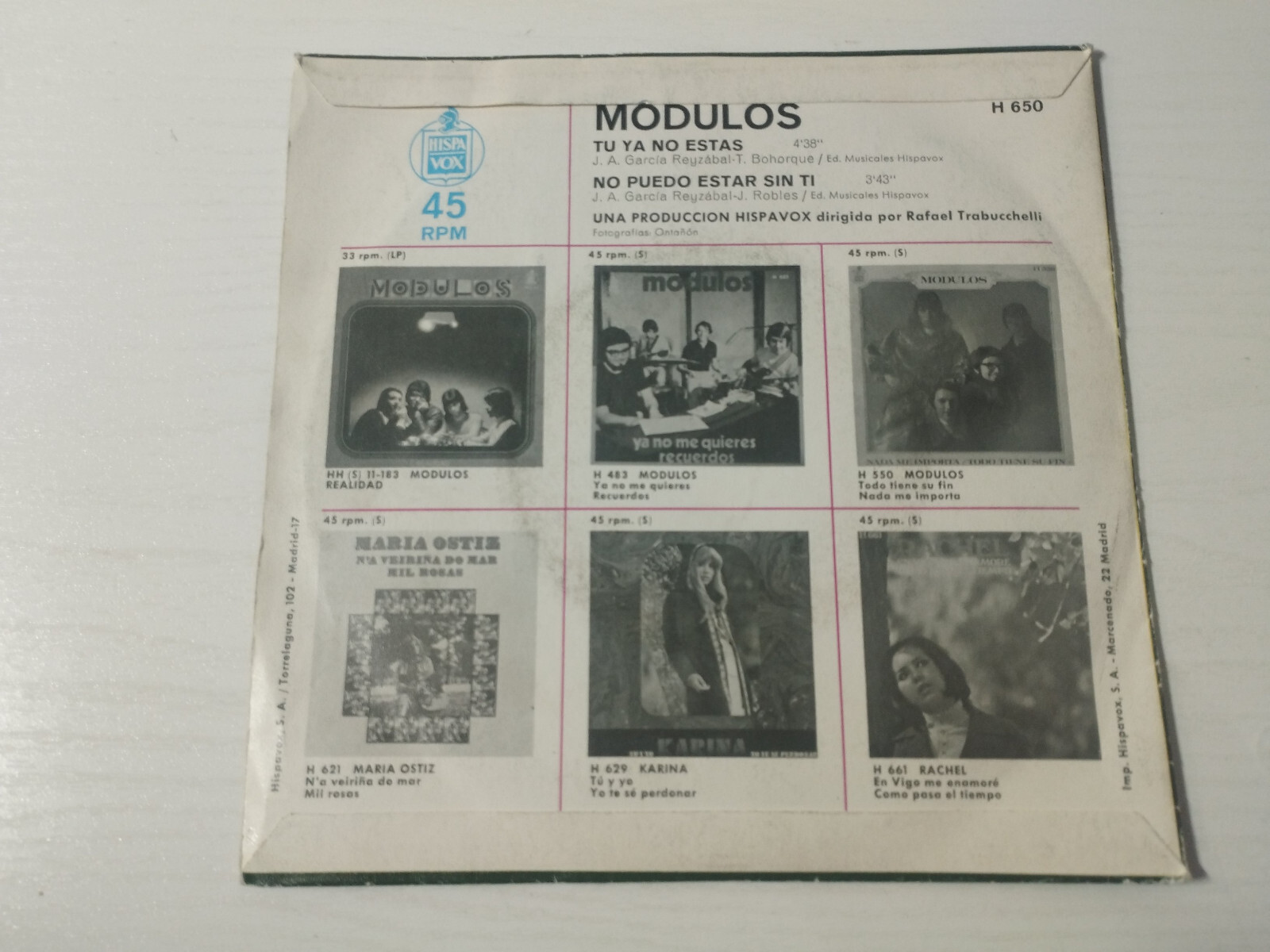 Modules tu Ya no These Can Estar sin Ti 1970 H-650 - Single LP vinyl 7 " VG/VG