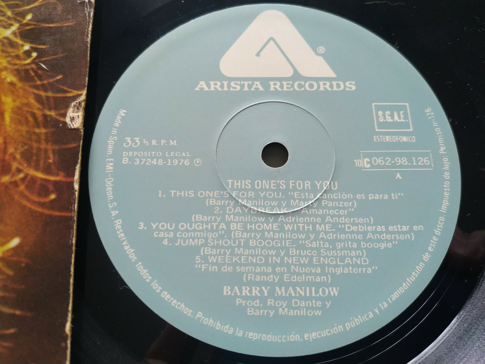 Barry Manilow This One's For You Arista 1976 Spain Edition - LP vinyl 12 "G+/Vg