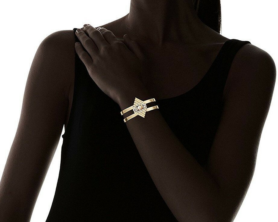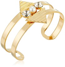 Yochi 18K Placcato Oro Cleopatra Piramide Aperto Perla E Cristallo Bracciale