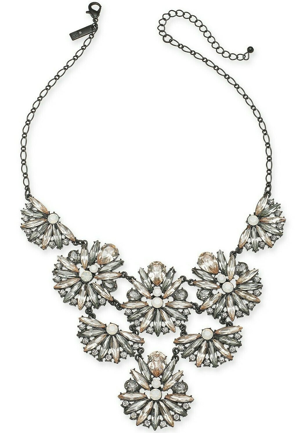 Questo e per un nuovo di zecca con tag Collana dell'istruzione cluster di cristalli toni neri, estensione da 17 " + 3", creata Eccezionali gruppi di cristalli assortiti danno un effetto glamour a questa collana di dichiarazione di concetti internazionali. Set in metallo misto tono nero Ca. Lunghezza: 17 " + 3" Extender; Ca. Drop: 7 " Chiusura di chiusura di aragosta