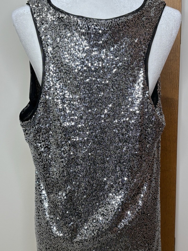 Silver Sequin Tank Top Guanyy XL Glitter Party Club Dance Disco Rave Holiday NYE