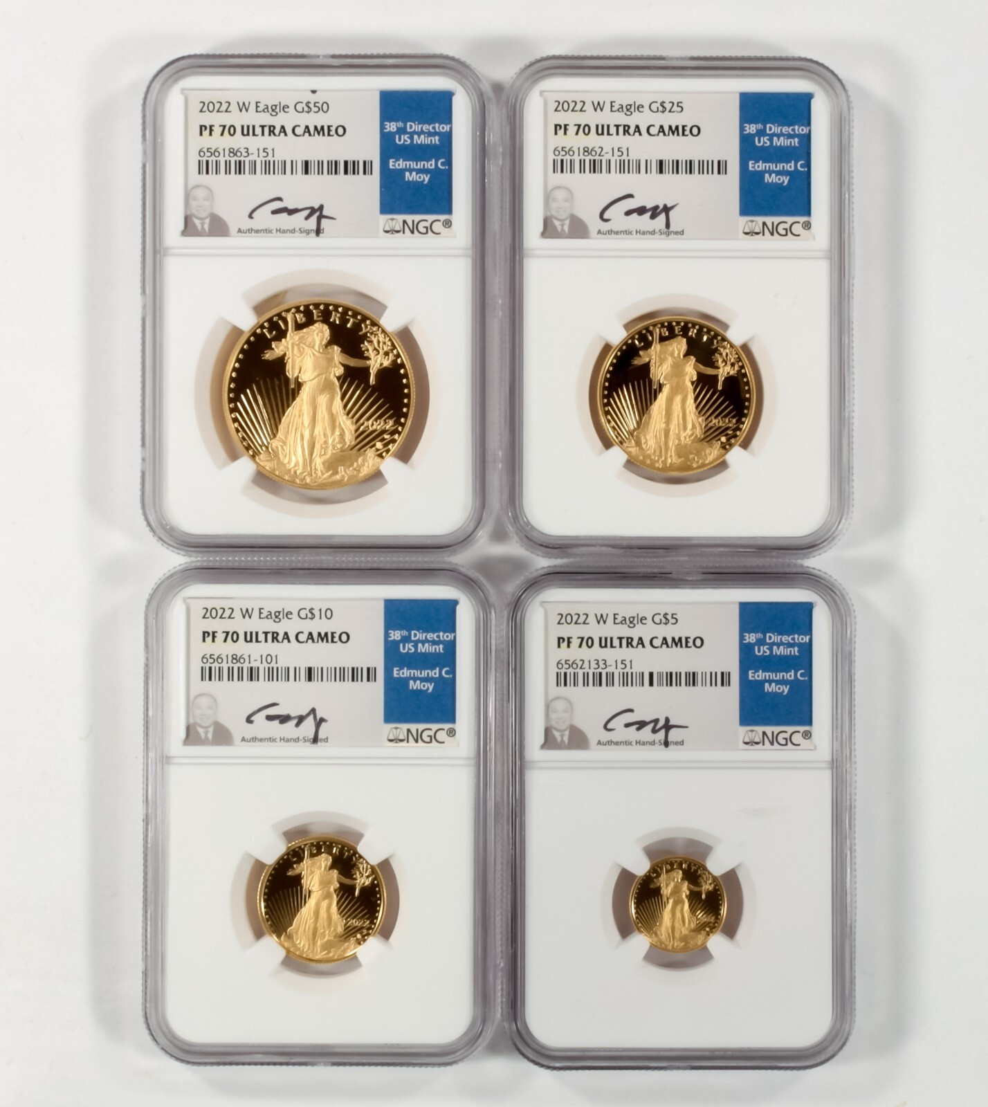 2022-W American Eagle Gold Proof Set von NGC als PF70 UCAM Moy Signature abgestimmt