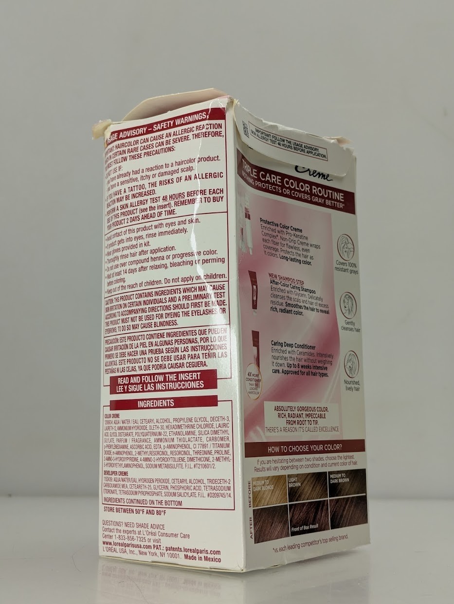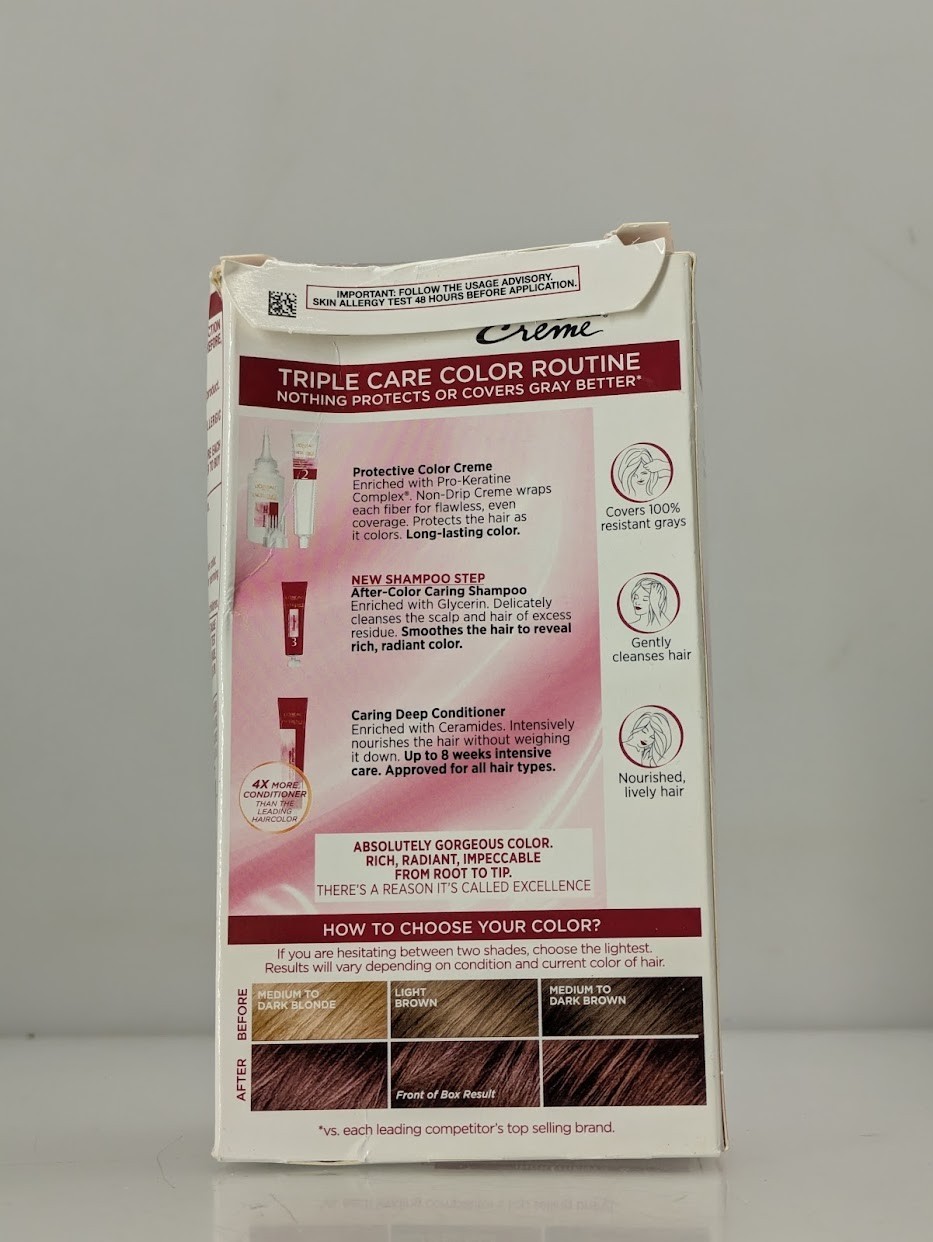 Your Excellence Just Got Better: New Triple Care Color Routine protects hair before, during, and after coloring for up to 8 weeks with a combination of ceramide, pro-keratine, and glycerin for rich color and revitalized hair. New look same great shades