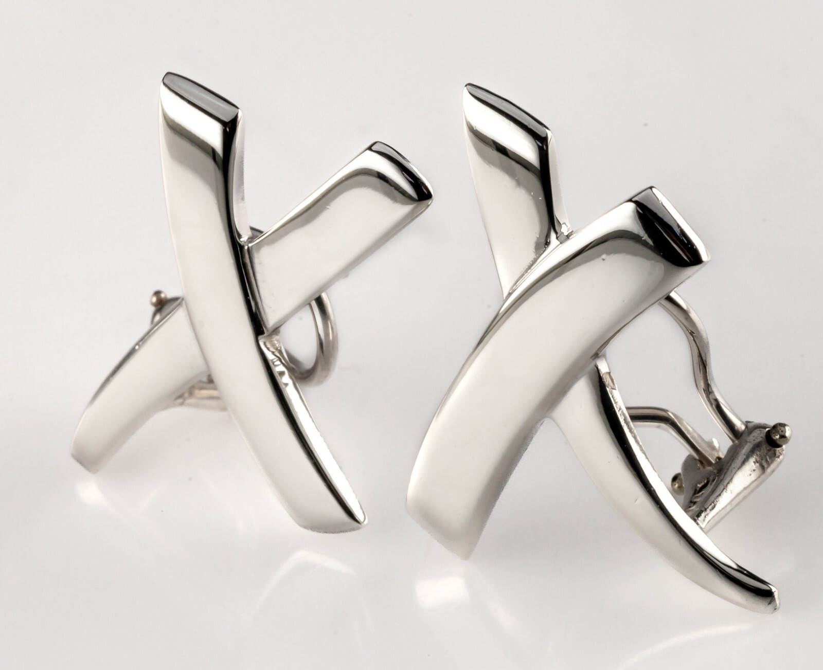Tiffany & Co.Sterlingsilber Paloma Picasso Groß X Kiss Ohrringe Omega Rückseite