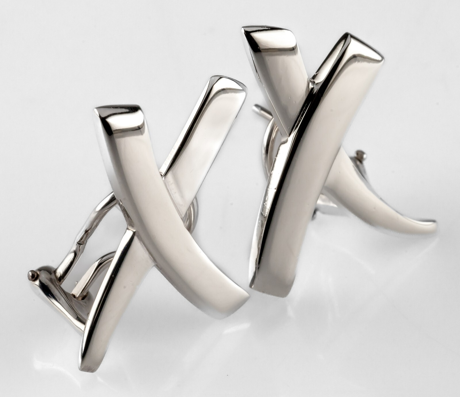 Tiffany Co.Sterlingsilber Paloma Picasso Groß X Kiss Ohrringe Omega Rückseite