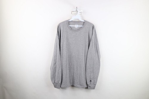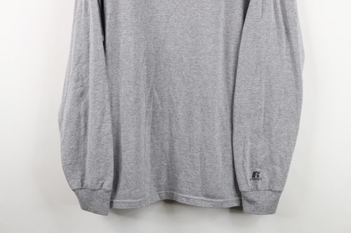 Vintage Russell Athletic Mens Large Faded Blank Long Sleeve T-Shirt Heather Gray