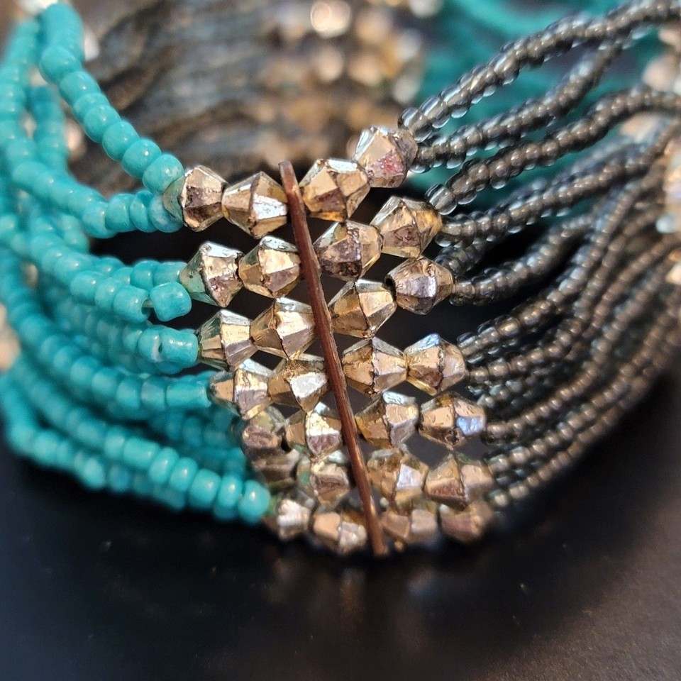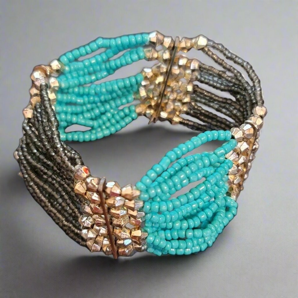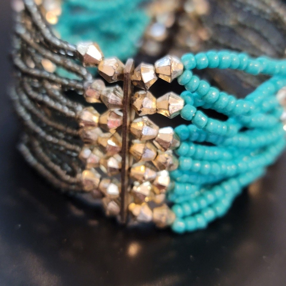 Black and Teal Beaded Stretch Bracelet and 50 similar items
