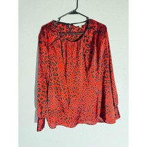 Rebecca Malone Red Animal‑Print Long‑Sleeve Blouse – Size XL