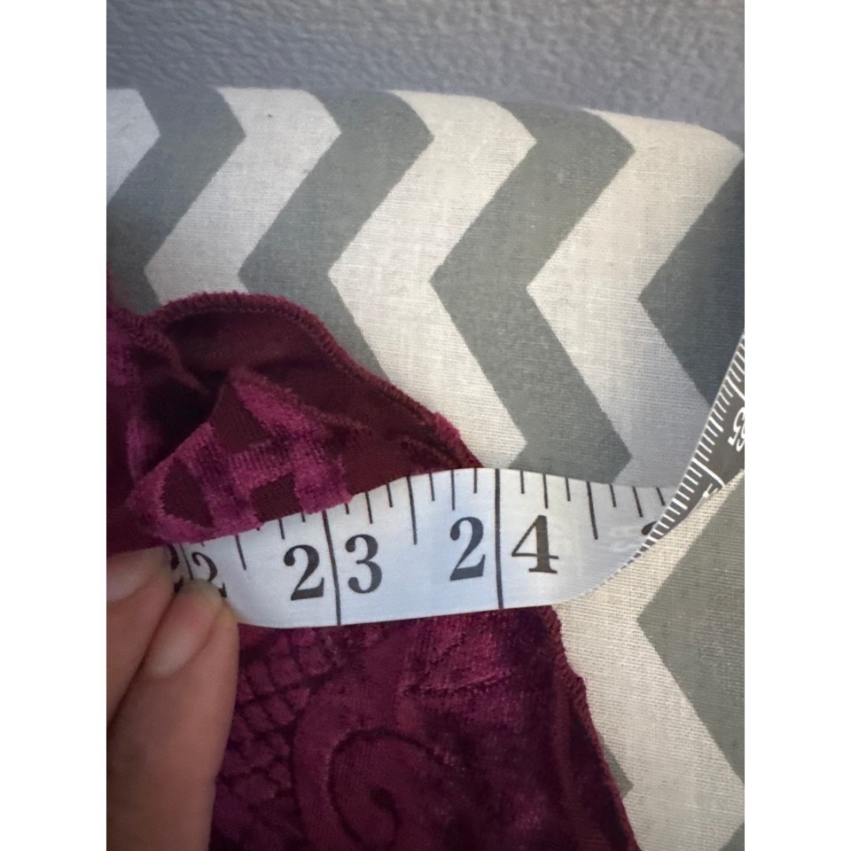 Chic and soft Ultra Pink velvet blouse in women?s size Medium. Designed with long sleeves and a flattering fit. Made of a stretchy blend: 70% polyester, 22% nylon, 8% elastane for comfort and ease of movement. Measures 21? pit to pit, 24? length, and 24? sleeves. A perfect statement top for evenings out, parties, or holiday events.