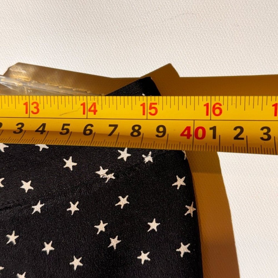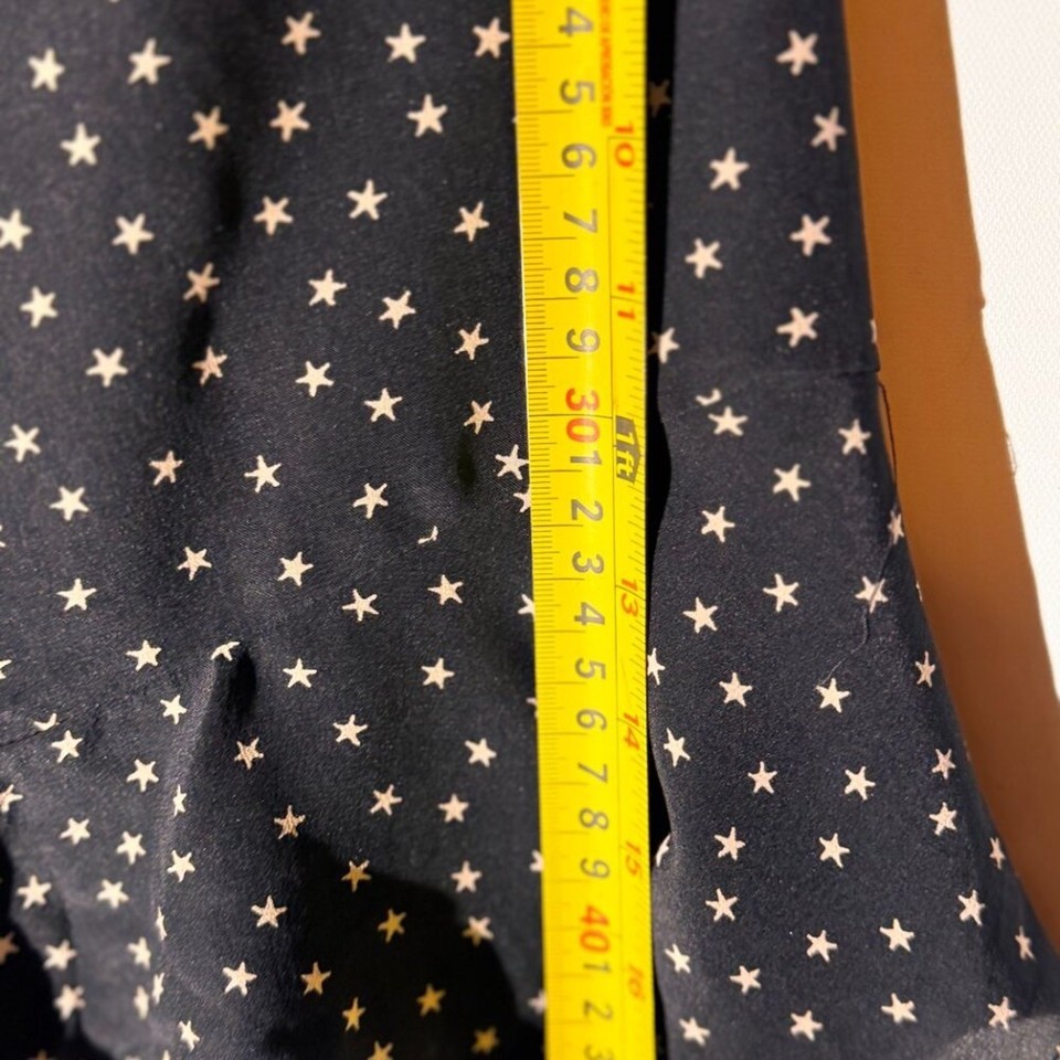 Add some celestial charm to your wardrobe with this adorable Madewell mini skirt. Featuring a black base with a playful white star print throughout, this skirt has a flattering fit-and-flare silhouette with a ruffled hem that adds movement and flair. It's made with a lightweight, lined fabric and includes a hidden back zipper for a seamless look. Perfect for day-to-night wear?pair it with a blouse and boots or keep it casual with a tee and sneakers.