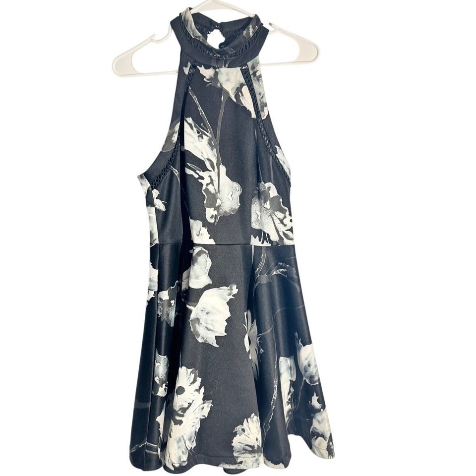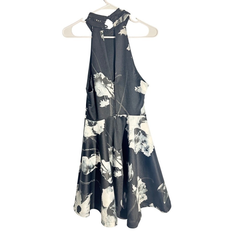B. Darlin Black White Floral Halter Fit & Flare Dress Size 13/14