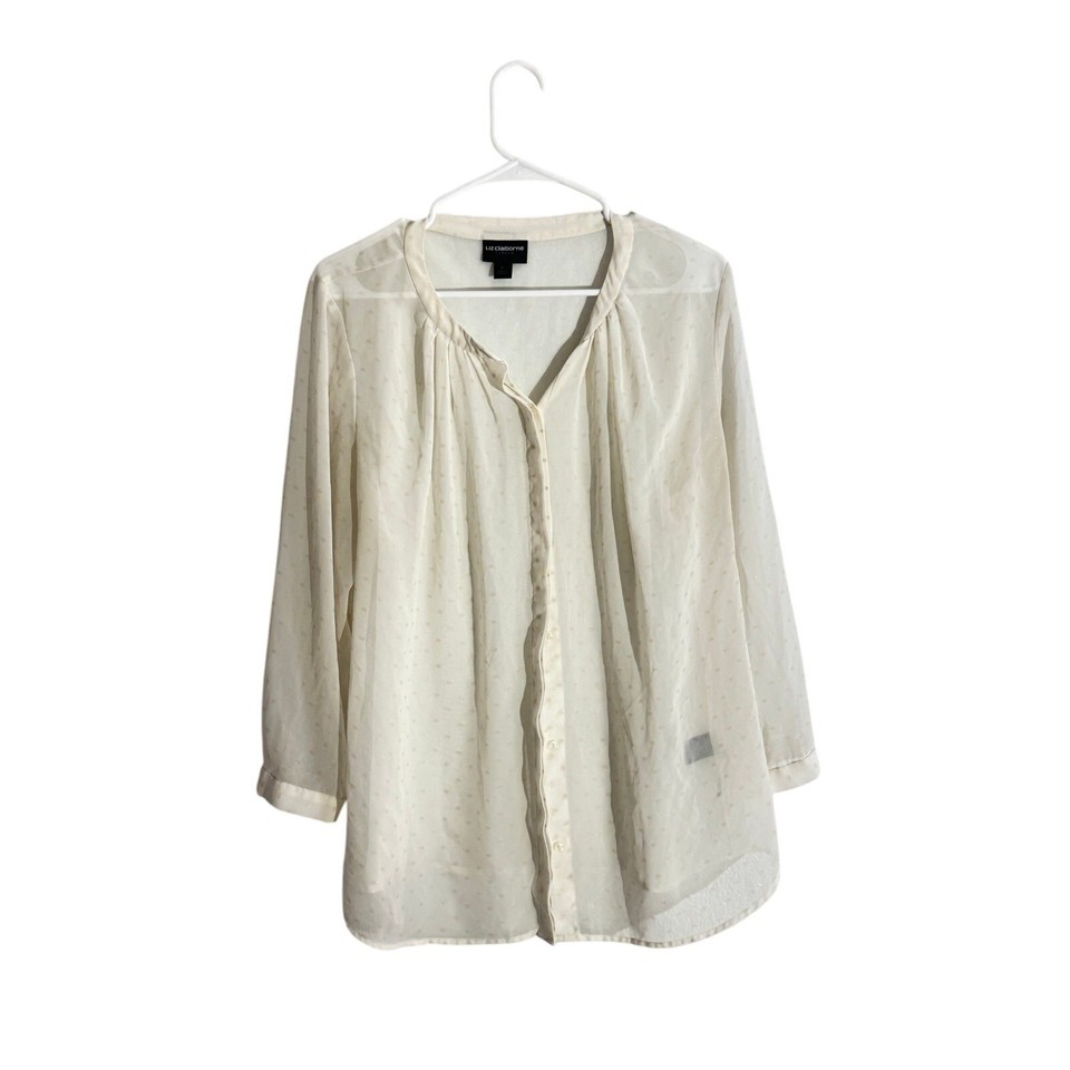 Liz Claiborne Career Ivory Sheer Dot Chiffon Blouse – L