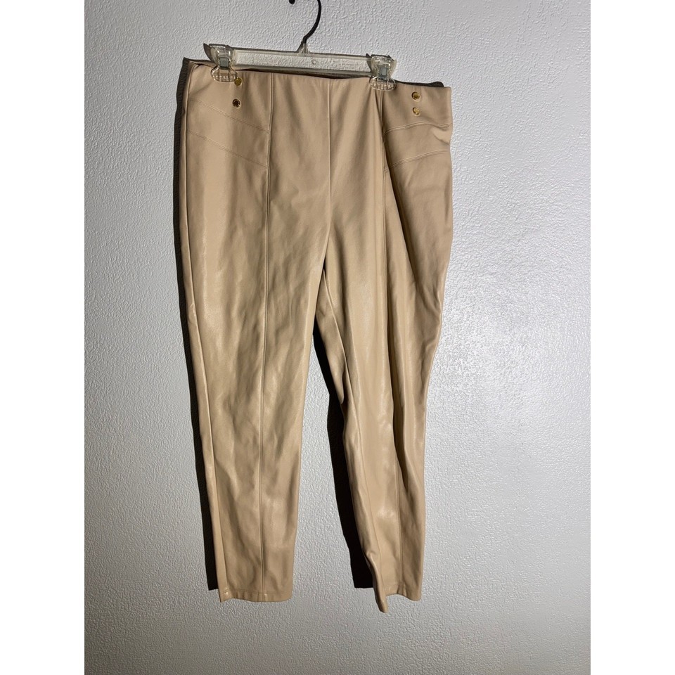 Marc New York Andrew Marc Faux Leather Pants Size L Beige Pull-On Tapered Leg