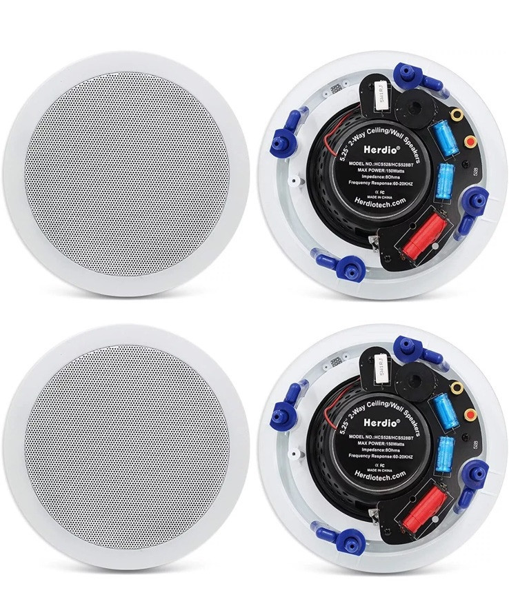 Herdio 2Pcs Bluetooth In-Wall/Ceiling Speakers 5.25" 600W Flush Mount for Home
