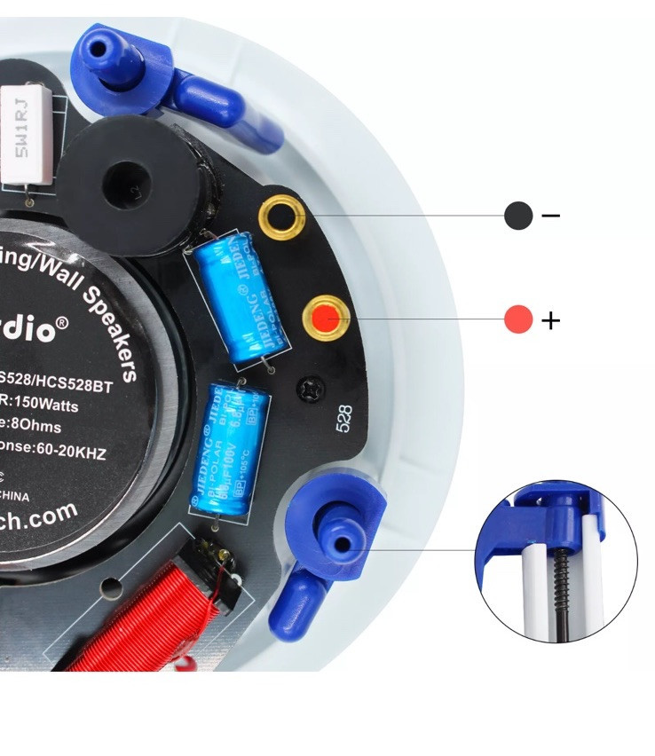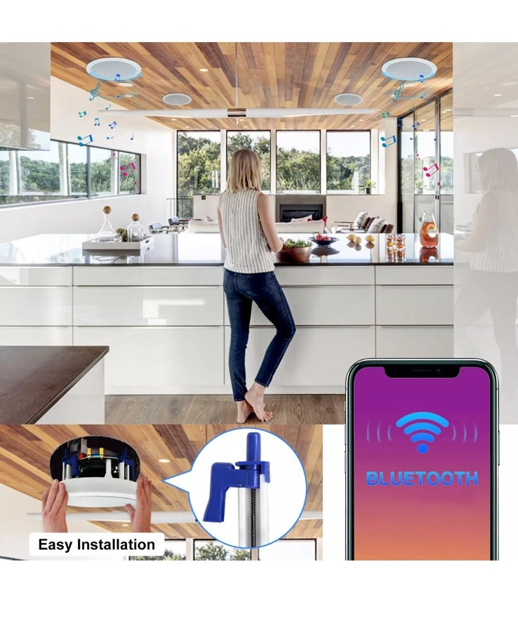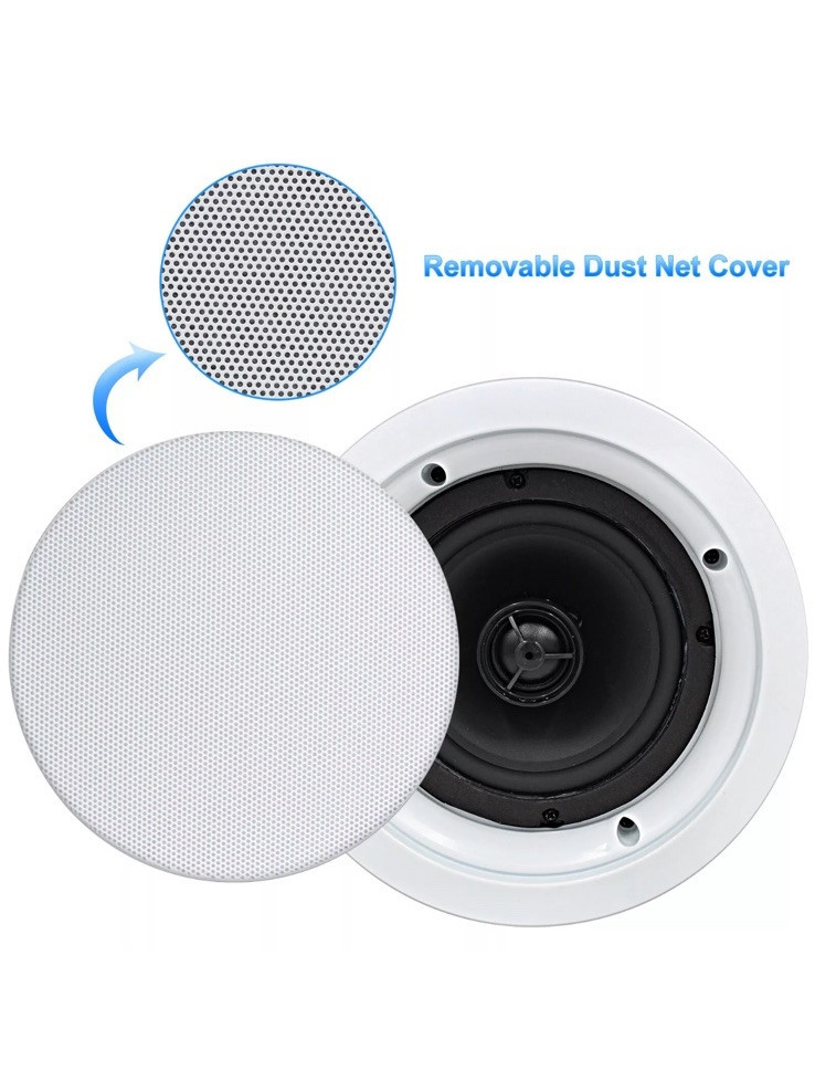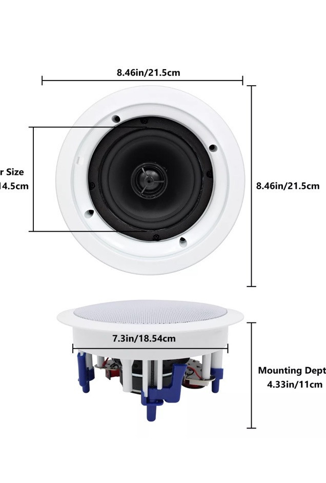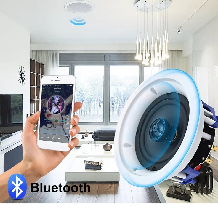 These ceiling speakers are Bluetooth compatible and feature audio inputs via AUX. They have a powerful RMS power output of 600W and an impedance of 8 Ohms. The speakers are designed for both Bluetooth and wired connectivity, making them versatile and easy to use. With a 1-year manufacturer warranty, you can enjoy these speakers with peace of mind.