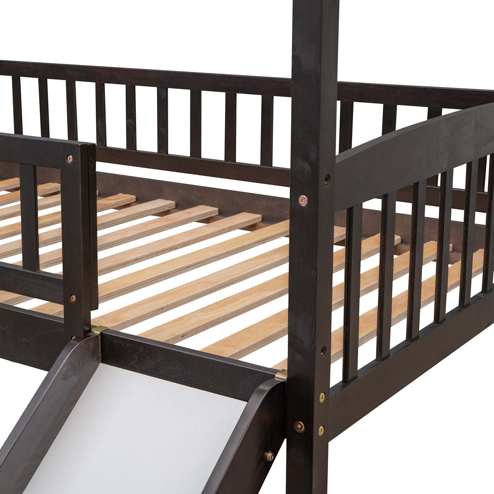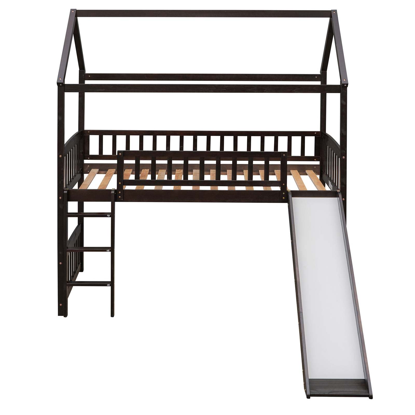 Kids Twin Loft Bed with Slide, House Bed Design - Espresso Finish