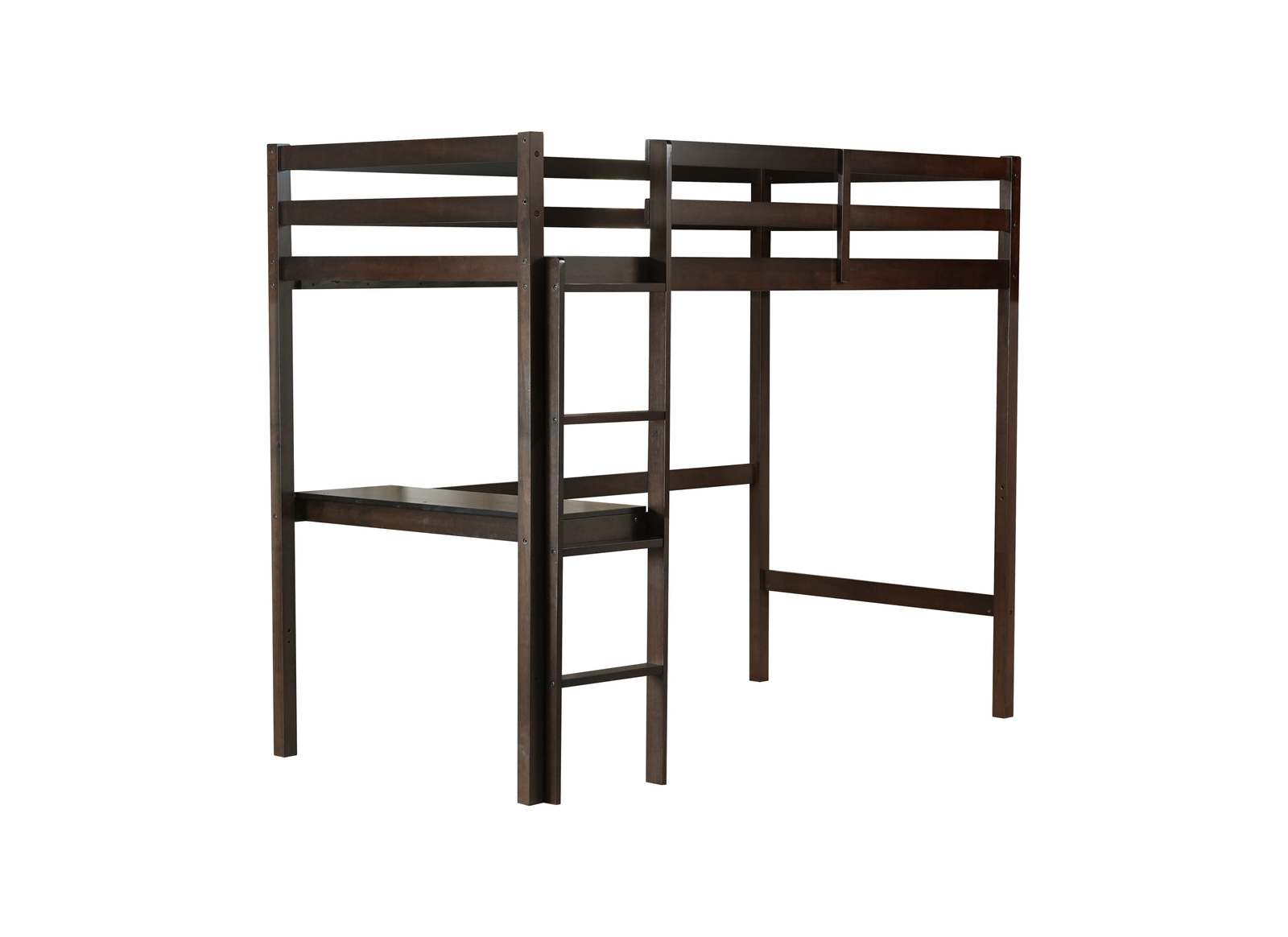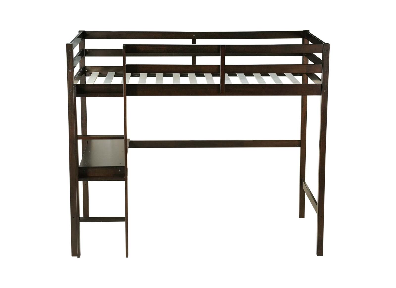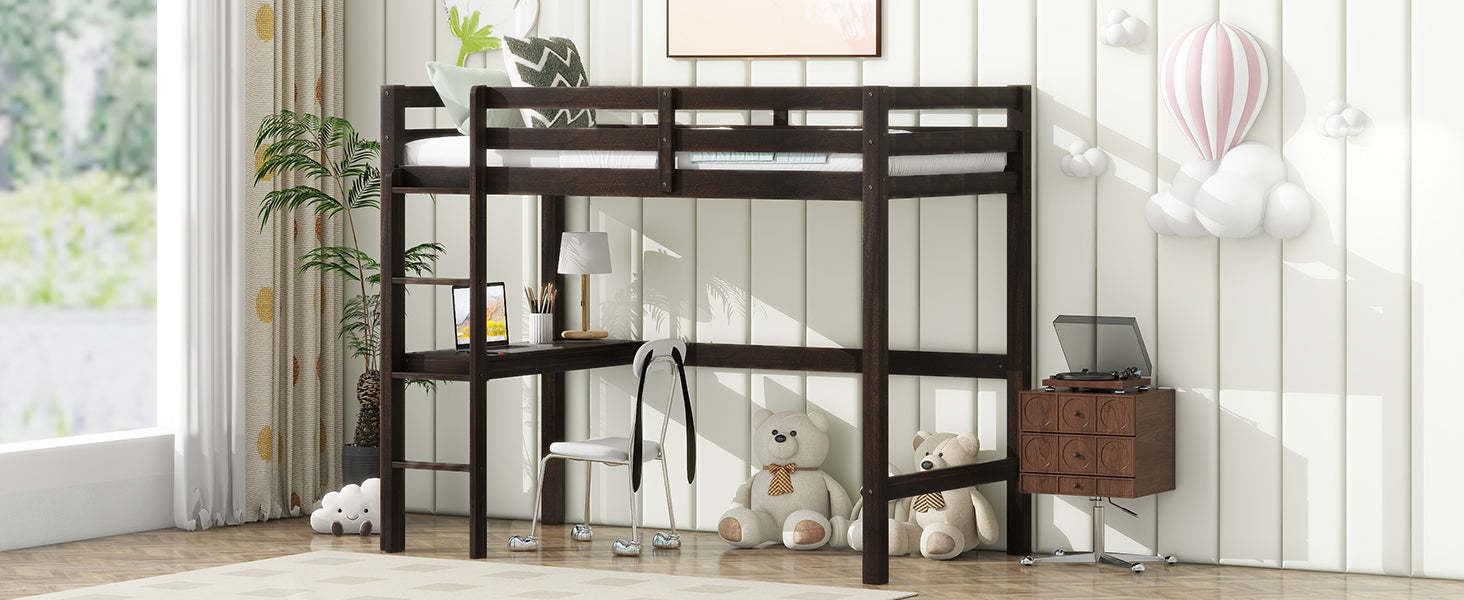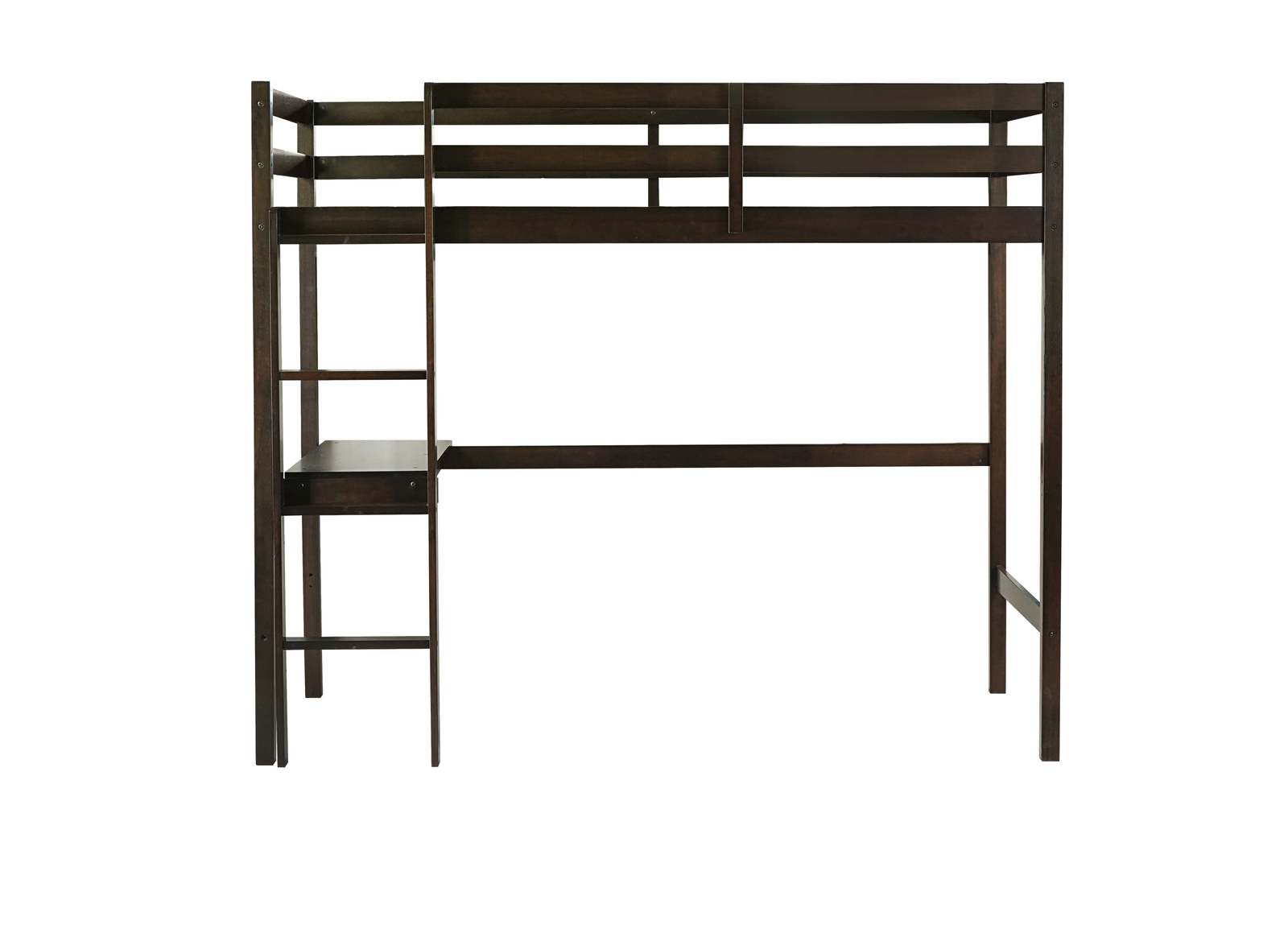 Twin High Loft Bed with Desk, Ladder, Safety Rail, Rubber Wood, Espresso