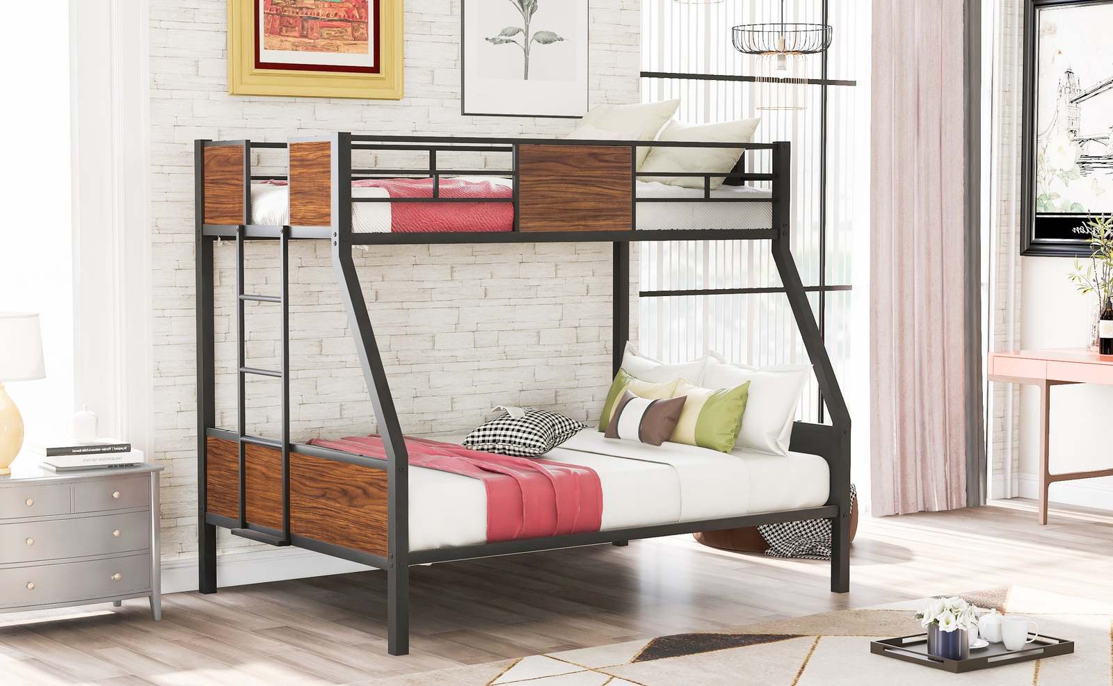 Modern Steel Twin-Over-Full Bunk Bed with Ladder & Rail for Dorm & Bedroom