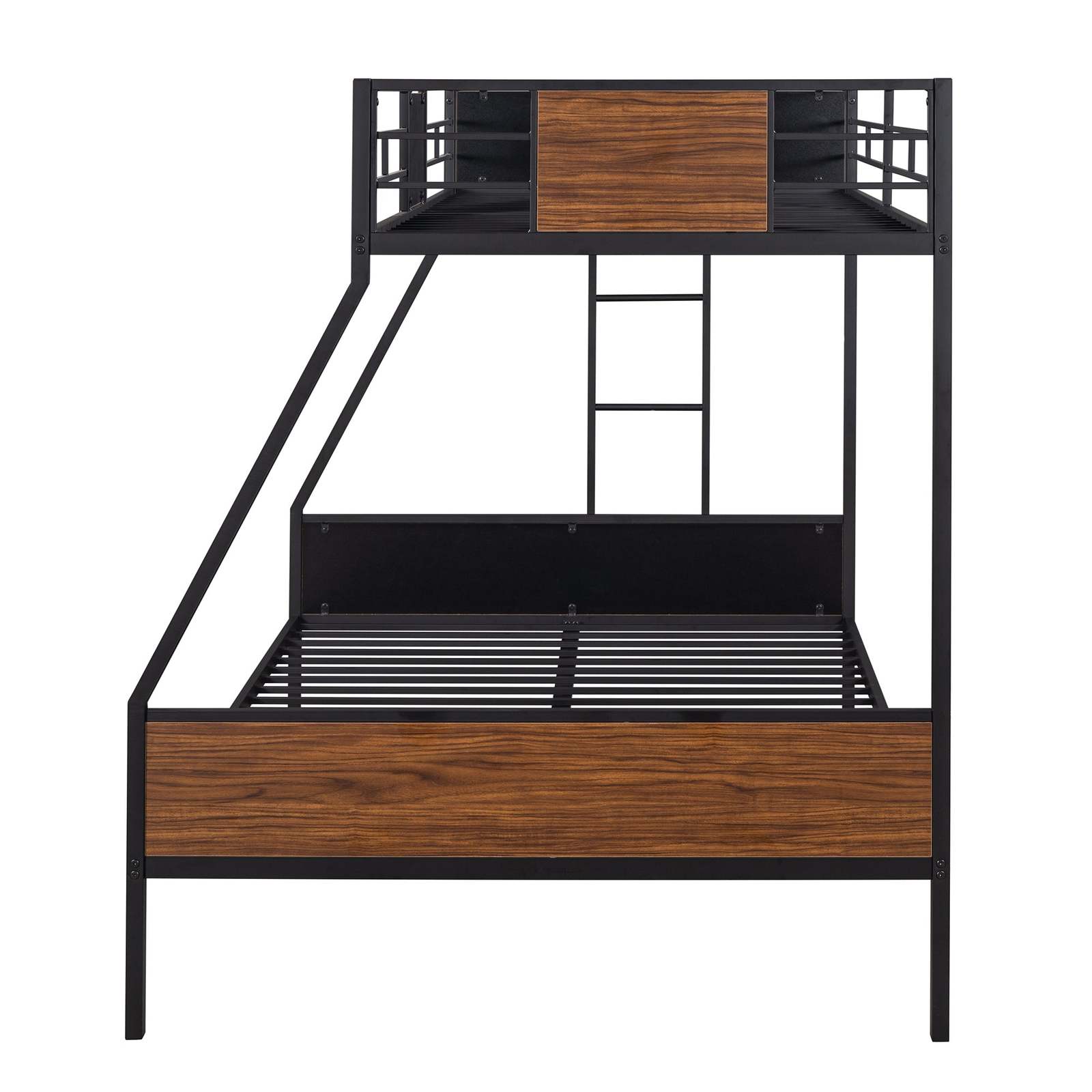 ?Unique Style?This bunk bed is a versatile must-have that can immediately lend a chic look to your home. It?s designed with a cool, al-black frame stylishly paired with natural, wood-grain MDF board and brings a novel and gorgeous atmosphere to the bedroom.