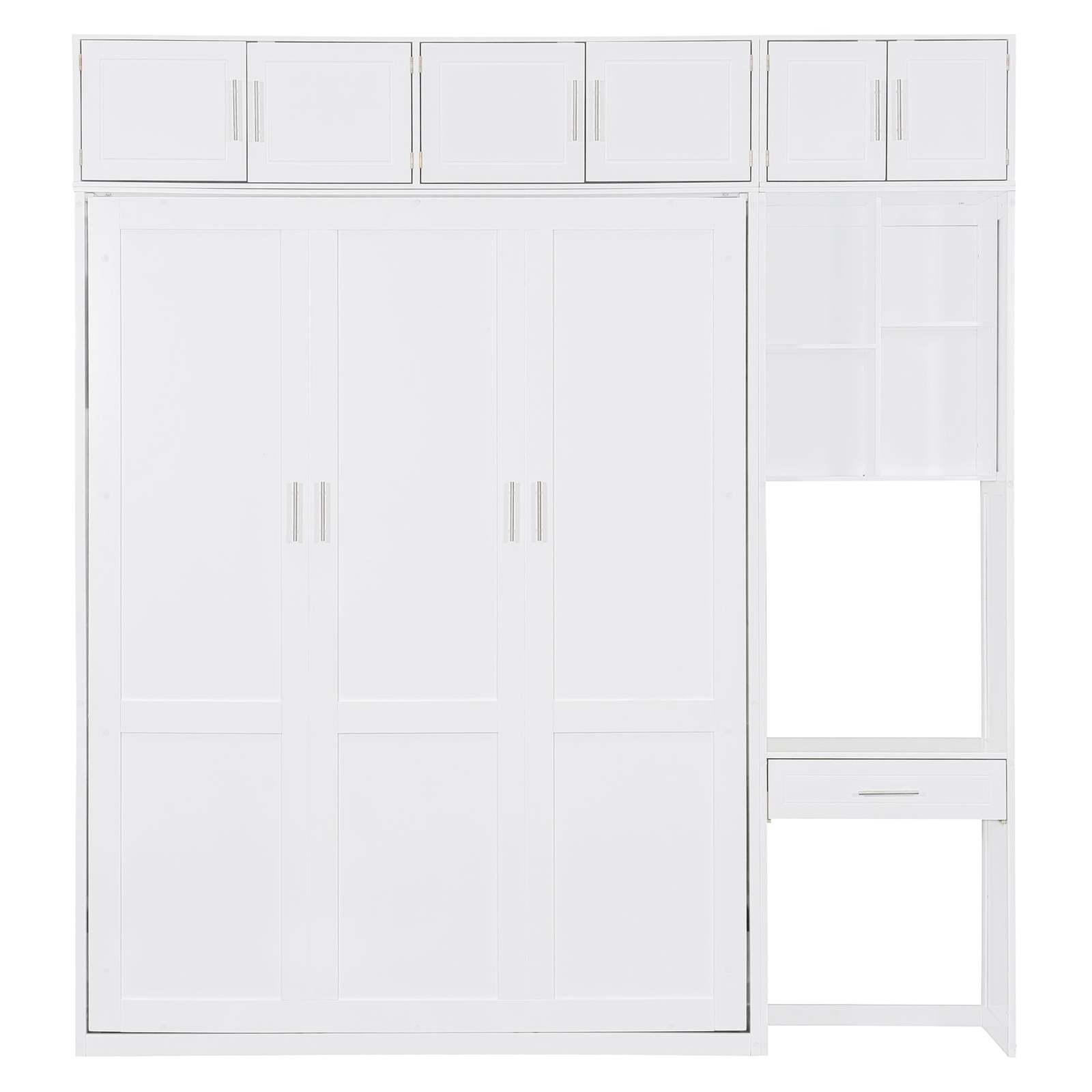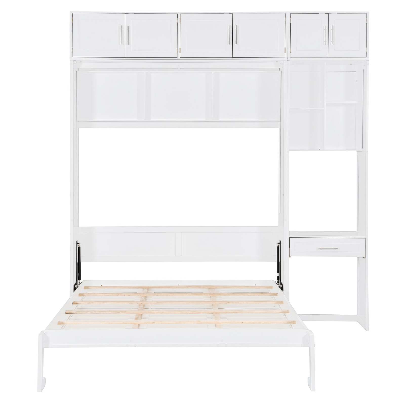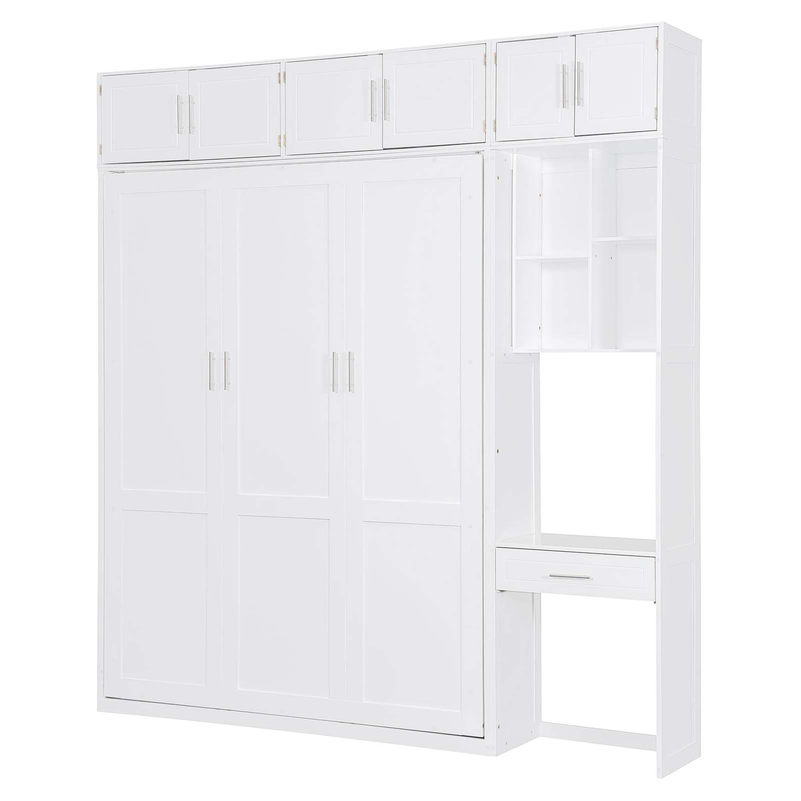 Queen Wall Murphy Bed with Desk, Shelves, Cabinet - Space Saving White