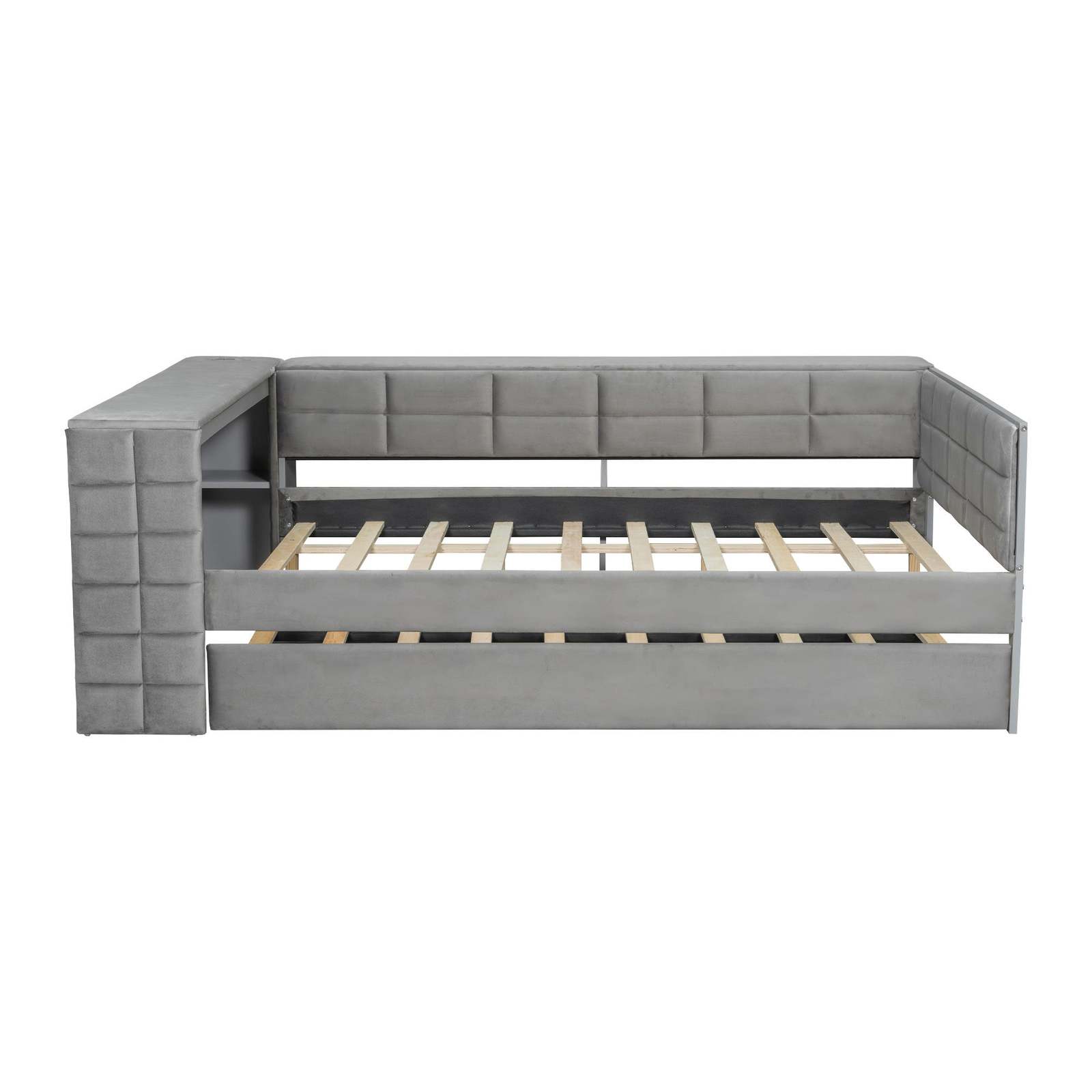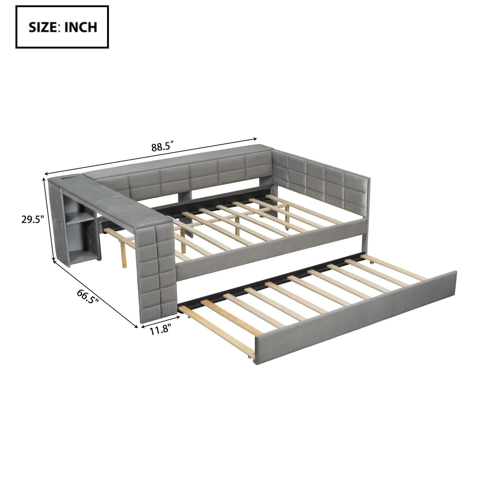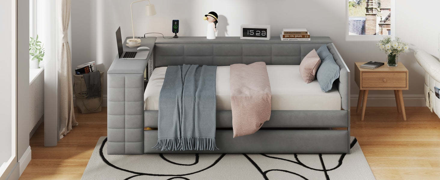 [Charging Station] This daybed comes with 2 standard plug putlets 2 USB ports in the storage shelf. It is very convenient for you to use your laptop to work immediately or to charge electronic devices while lying down.