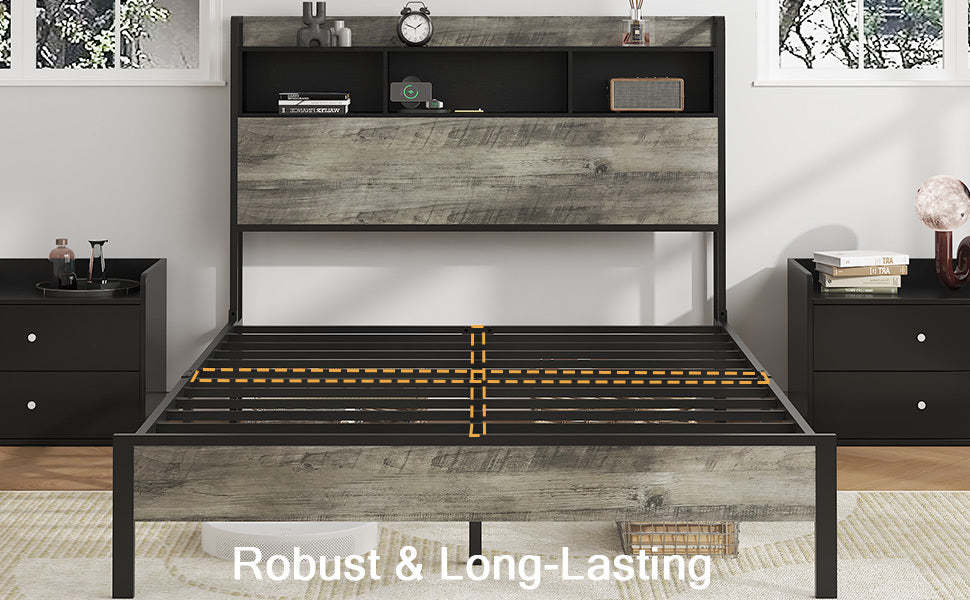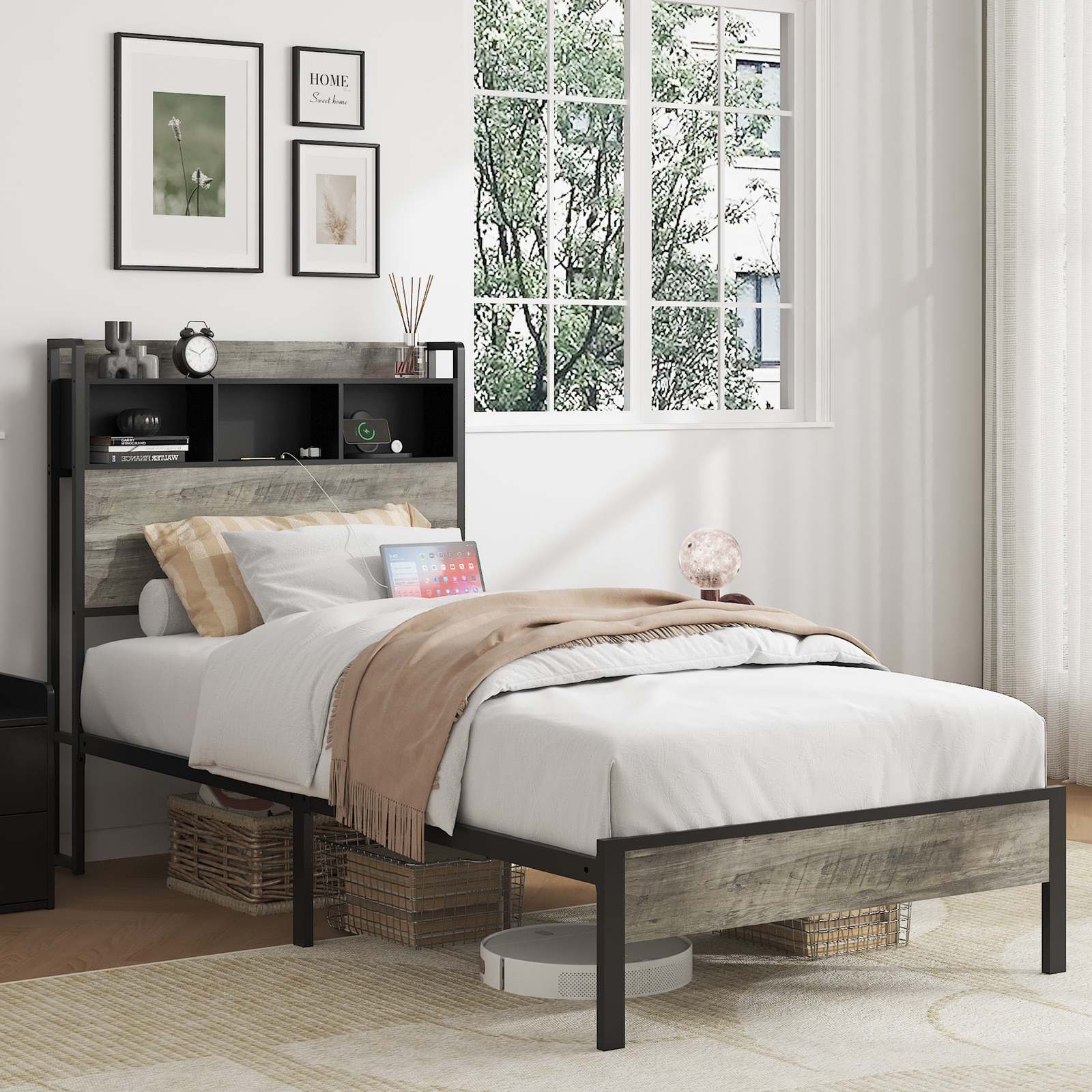 Smart Single Bed Frame with Headboard Storage & Charging Station