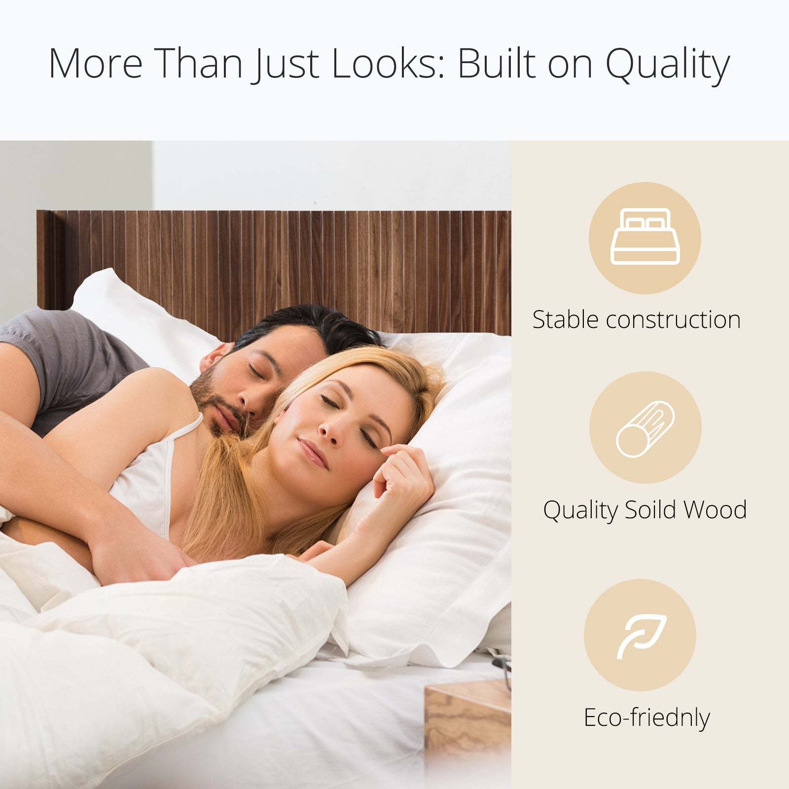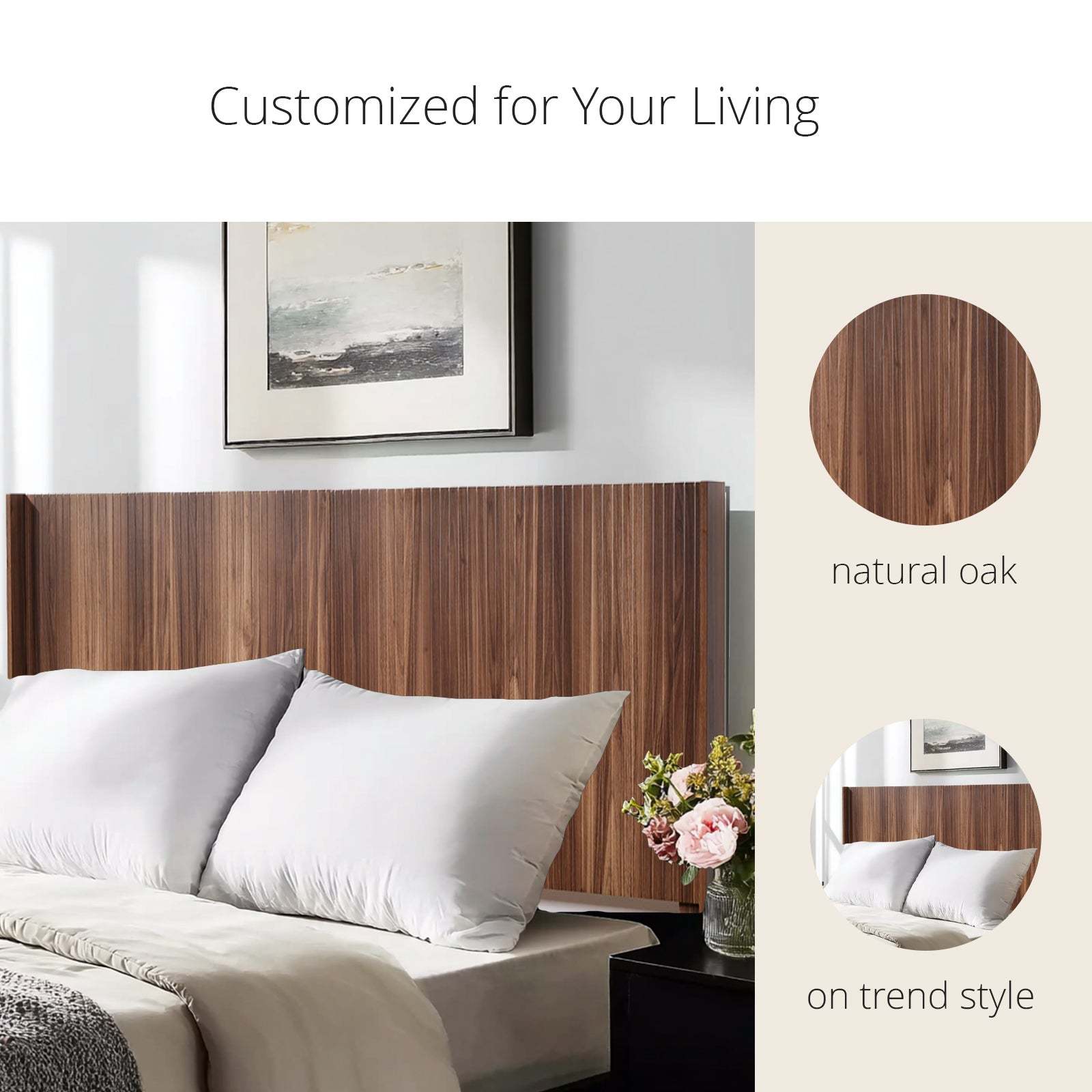 Walnut Wood Queen Headboard - Modern Farmhouse Fluted Wingback Boho