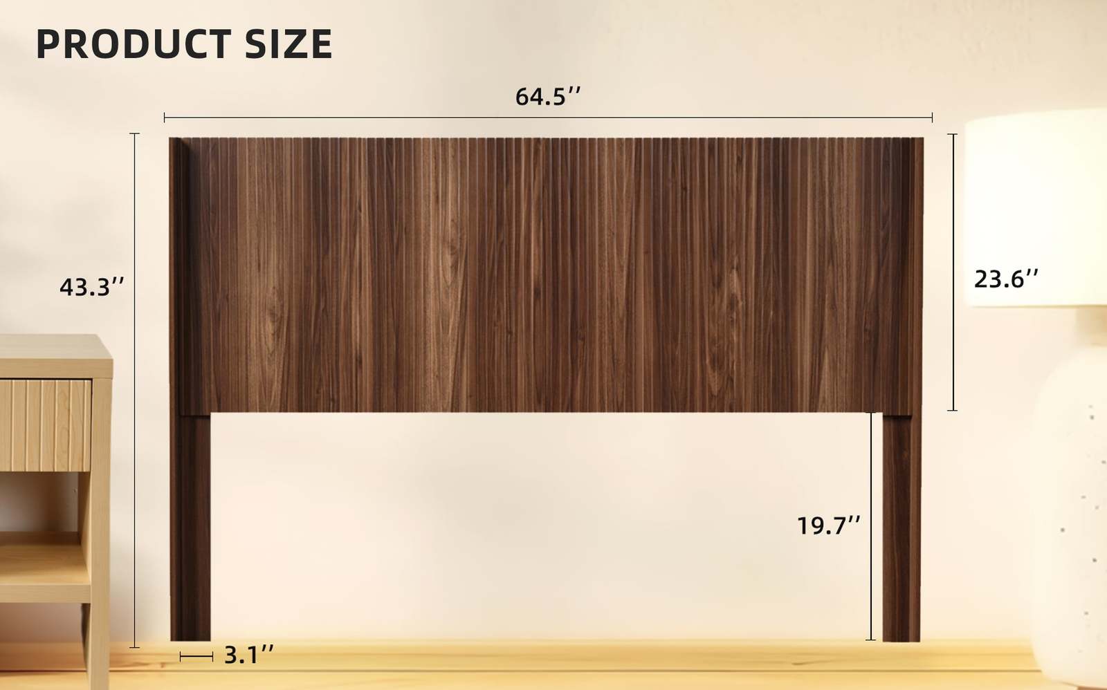 ELEGANT REAL WOOD LOOK: Our headboard showcases a stunning realistic wood grain surface, offering a luxurious and natural touch to your bedroom. Measuring 64.40 inches in length, 3.90 inches in width, and 43.30 inches in height, it?s perfect for enhancing the aesthetic appeal of your space.