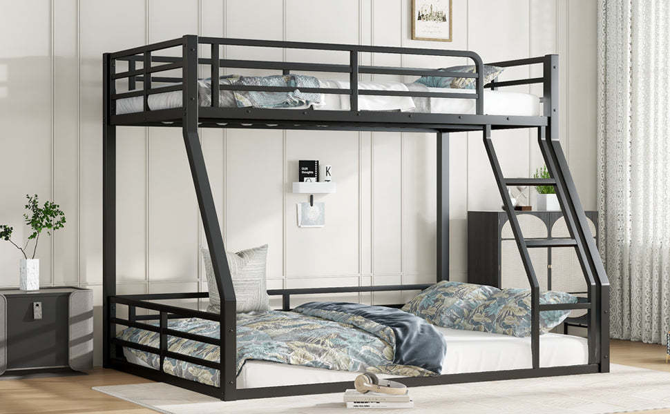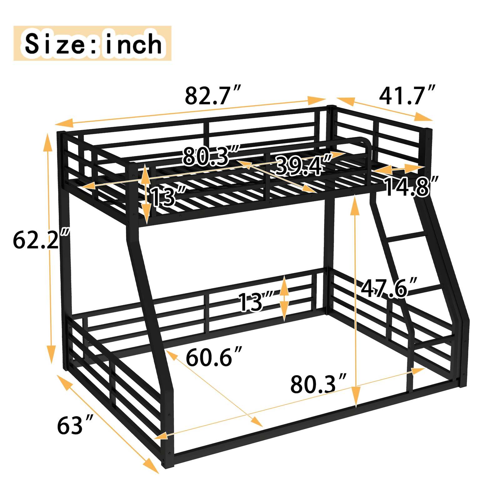 ?Sleek, Minimalist Style Fits Any Decor?With clean lines and a matte black finish, this twin xl over queen metal bunk bed blends effortlessly with a variety of furniture styles ? from modern and industrial to traditional. A timeless, versatile choice for kids, teens, or guest rooms.