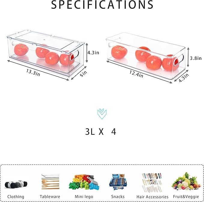 Size:This set including 4 containers. 4*3 L(5"W*13.3"L*4.4"H)