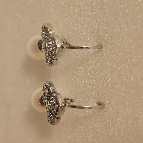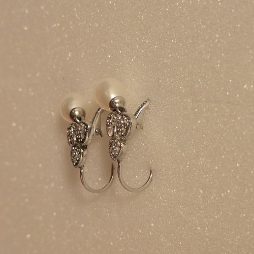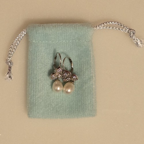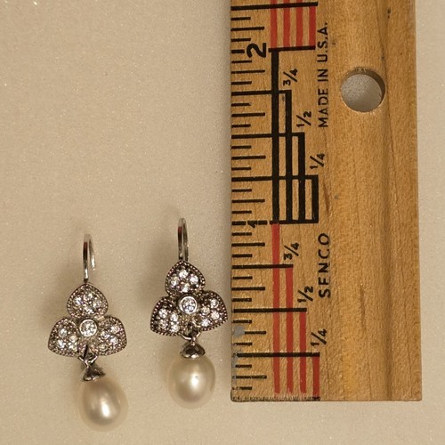 VTG Joseph Esposito Sterling Silver Cubic Zirconia Tear Drop Pearl Earrings 1"