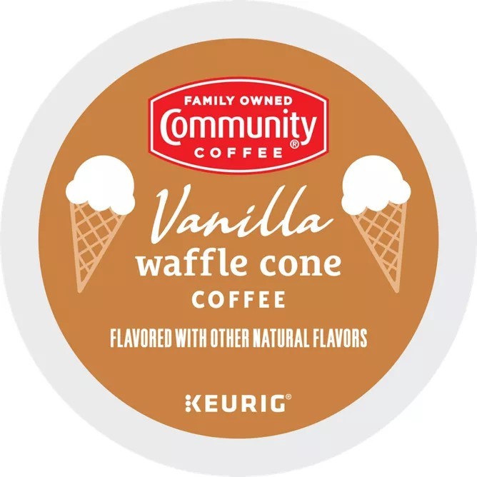 COMMUNITY COFFEE VANILLA WAFFLE CONE MEDIUM ROAST COFFEE PODS 24 CT. FREE SHIPPING.