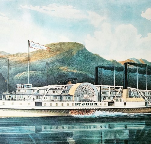 Hudson River Steamboat St John Currier & Ives 1950s Lithograph NY Ship DWHH16