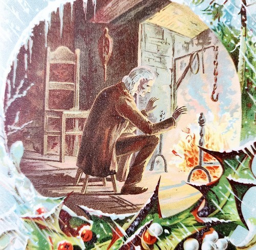 Winter Of Life Christmas Lithograph 1889 Victorian Old Man Mistletoe DWNN1