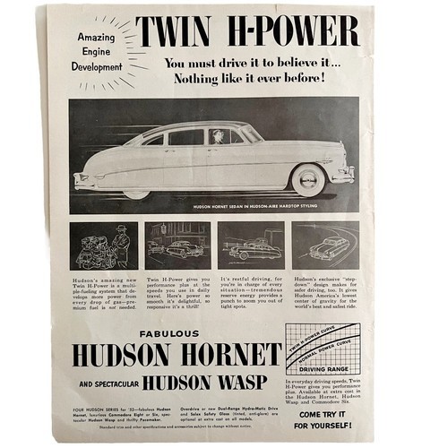 Hudson Hornet Sedan Aire Advertisement 1952 and 12 similar items