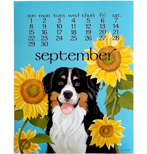 Bernese Mountain Dog Sunflower September Poster Calendar 14 x 11" Art DWDDCal