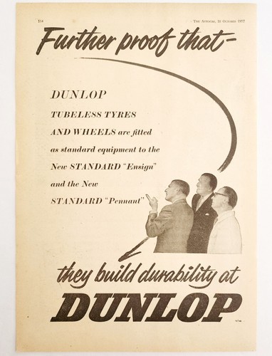 1957 Dunlop Tubeless Tires Wheels Import Advertisement Autocar Automobilia DWPP2