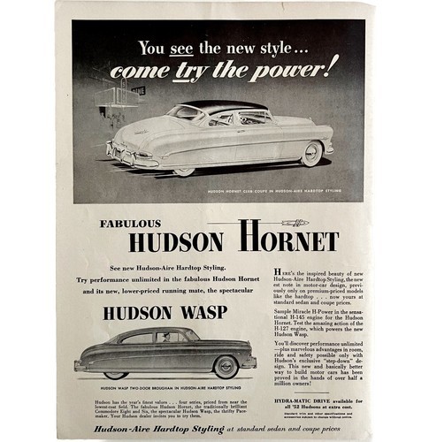 Hudson Hornet Club Coupe Advertisement 1953 and 11 similar items