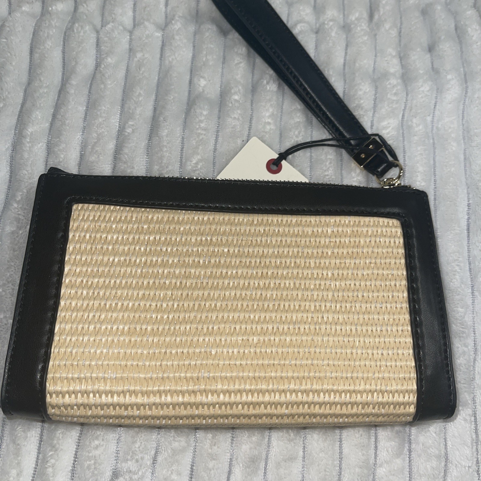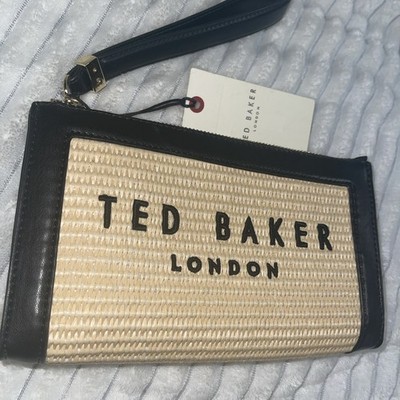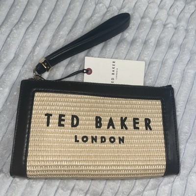 Ted Baker London Straw Woven Wristlet Clutch Bag Black Leather Trim NEW