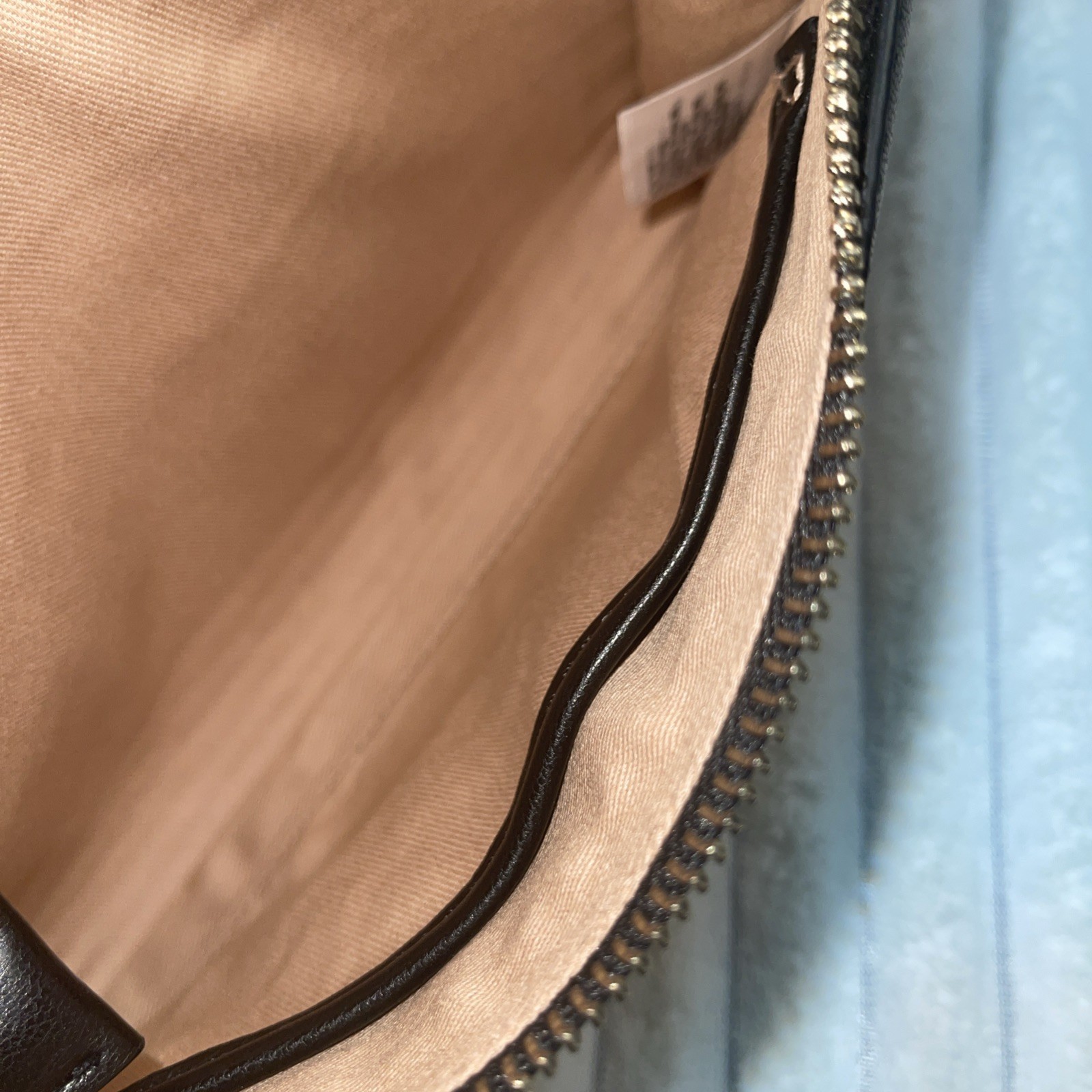 Gold-tone hardware with zipper closure