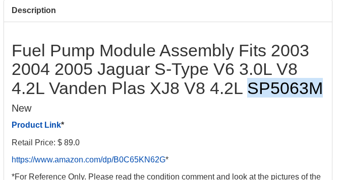 For Jaguar 2003-2005 S-Type 3.0L 4.2L 2004-2005 XJ8 4.2L Fuel Pump Assembly