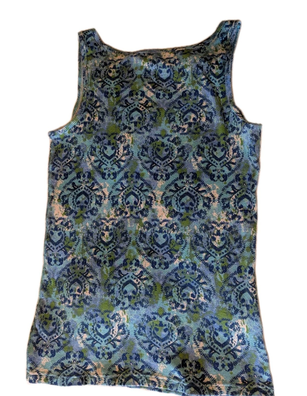 Faded Glory Womens Sleeveless Scoop Neck Paisley Stretch Cotton Blend Blue XL