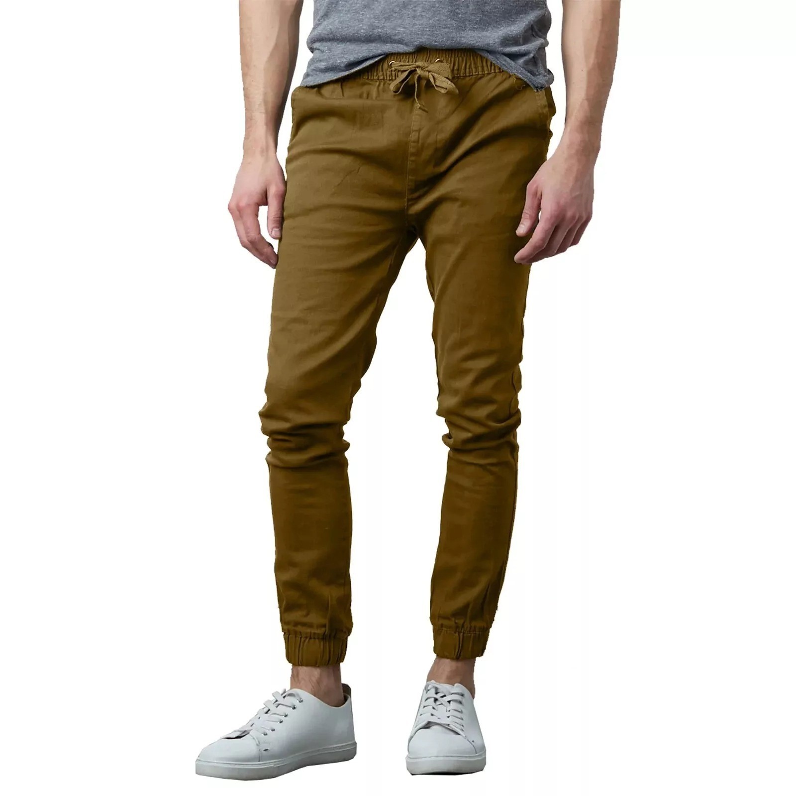 Galaxy By Harvic Men's Slim Fit Basic Stretch Twill Joggers in Brown-Small