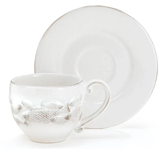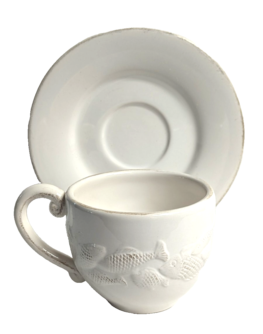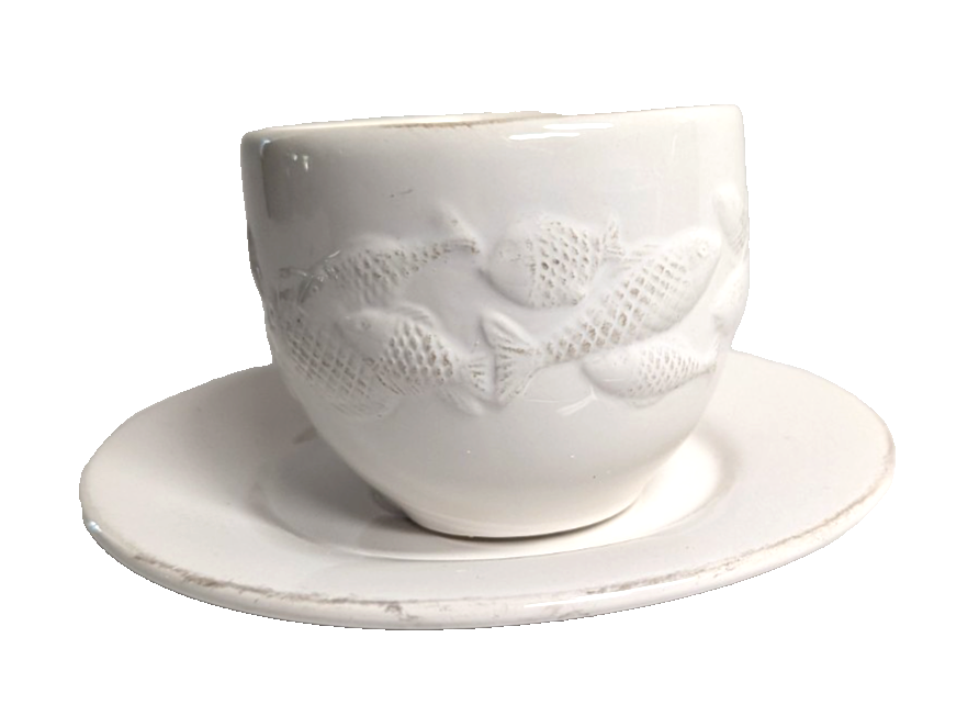 burton+Burton Mariner Bay Ceramic Teacup & Saucer Gift Set Fish Rustic Boxed