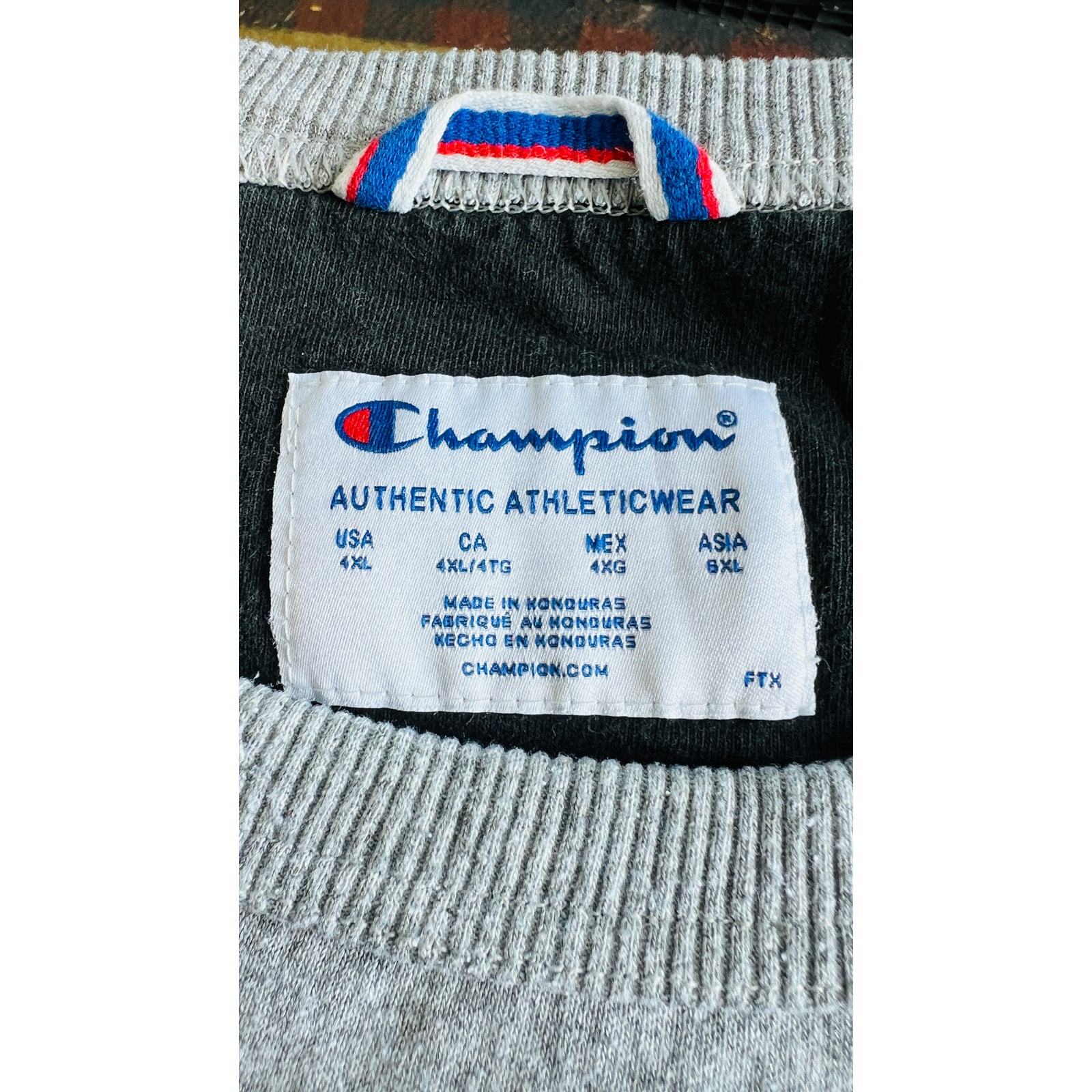 Classic and comfortable Champion gray crewneck sweatshirt in size 4XL.