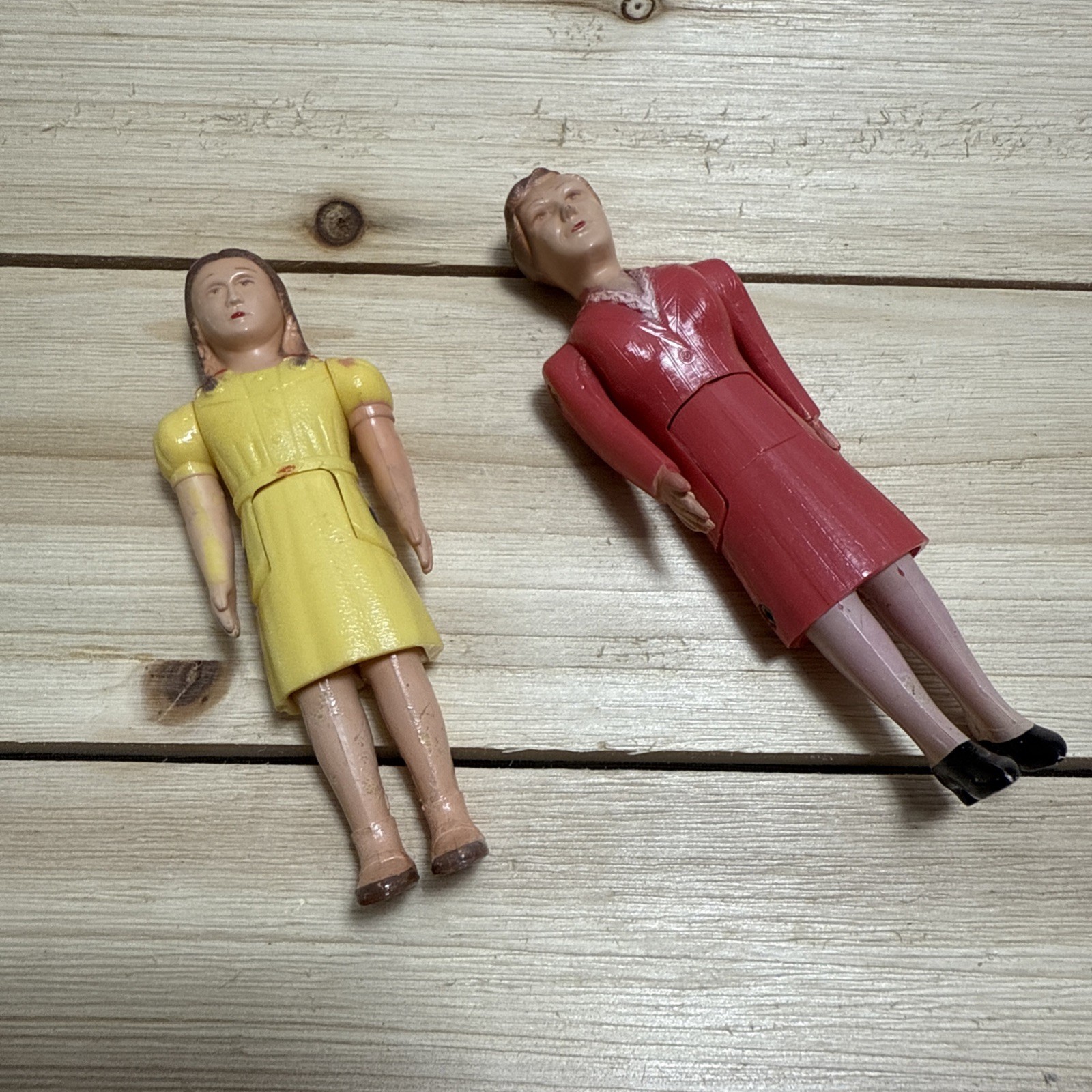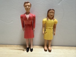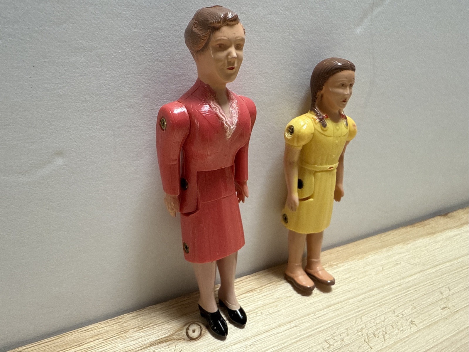 1950's RENWAL Jointed Dollhouse MOTHER & DAUGHTER Plastic Toy Figures Excellent