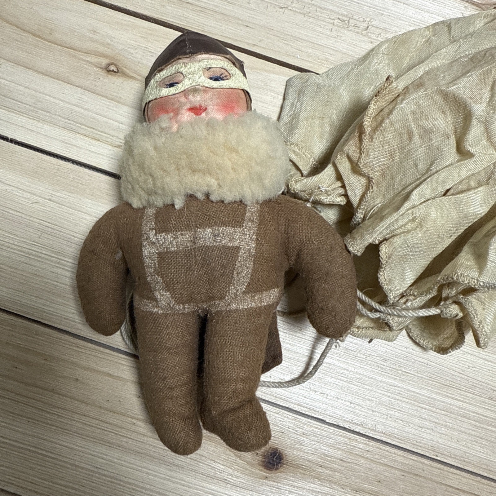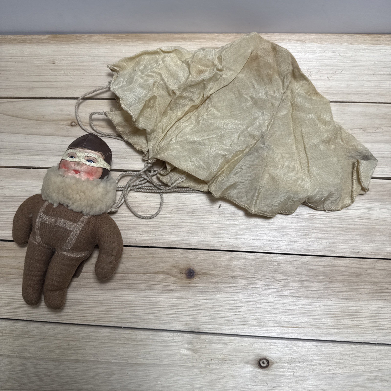 Vintage U.S. WWII Raggy-Doodle Paratrooper Cloth Doll w/ Parachute Complete Look